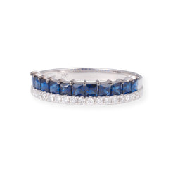 18ct White Gold Diamond & Blue Sapphire Band Ring LR-7033
