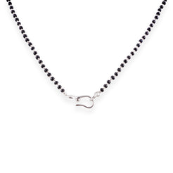 This 18ct white gold mangalsutra necklace features an elegant drop pendant adorned with sparkling diamonds, adding graceful movement and brilliance. Designed to merge tradition with contemporary style, it is a luxurious piece of bridal jewellery that symbolises love and timeless elegance.