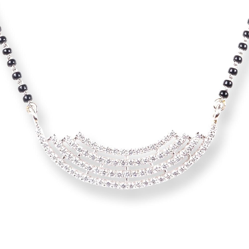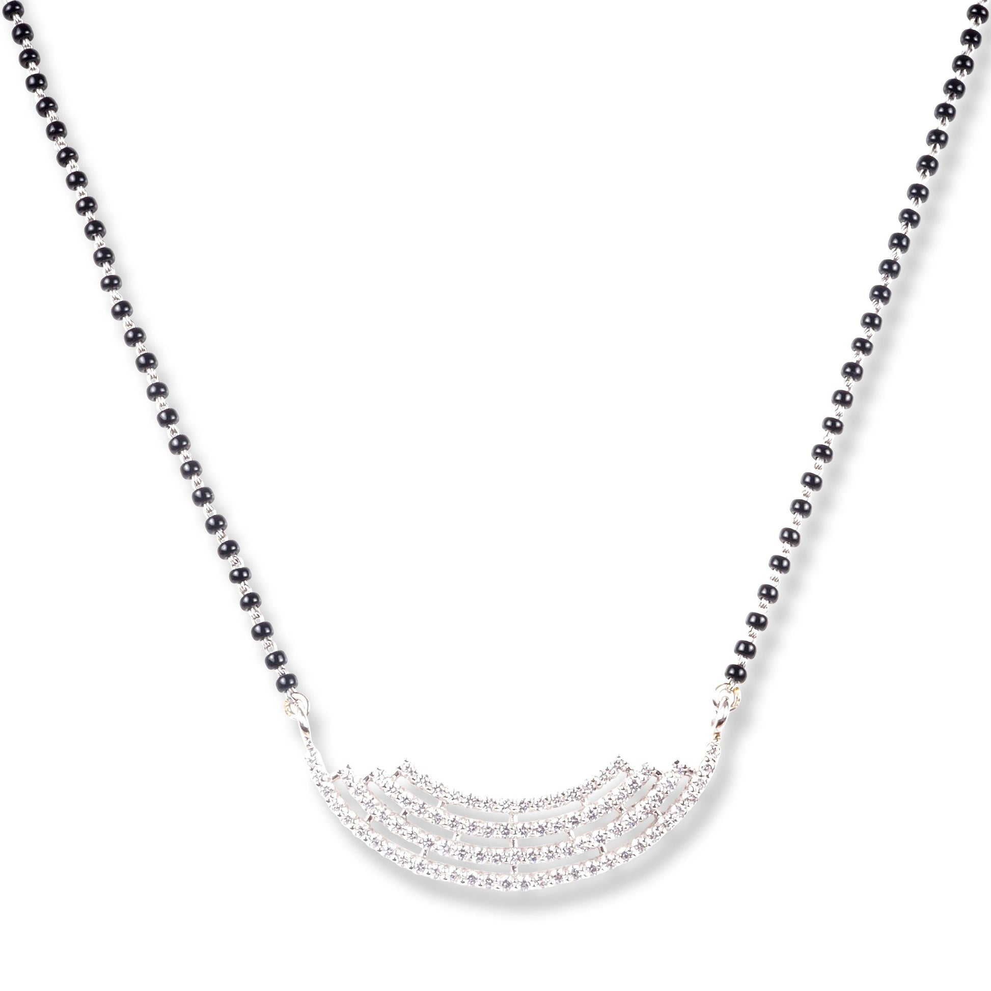 18ct White Gold Mangal Sutra with Swarovski Zirconia Stones & Hook Clasp MS-1678
