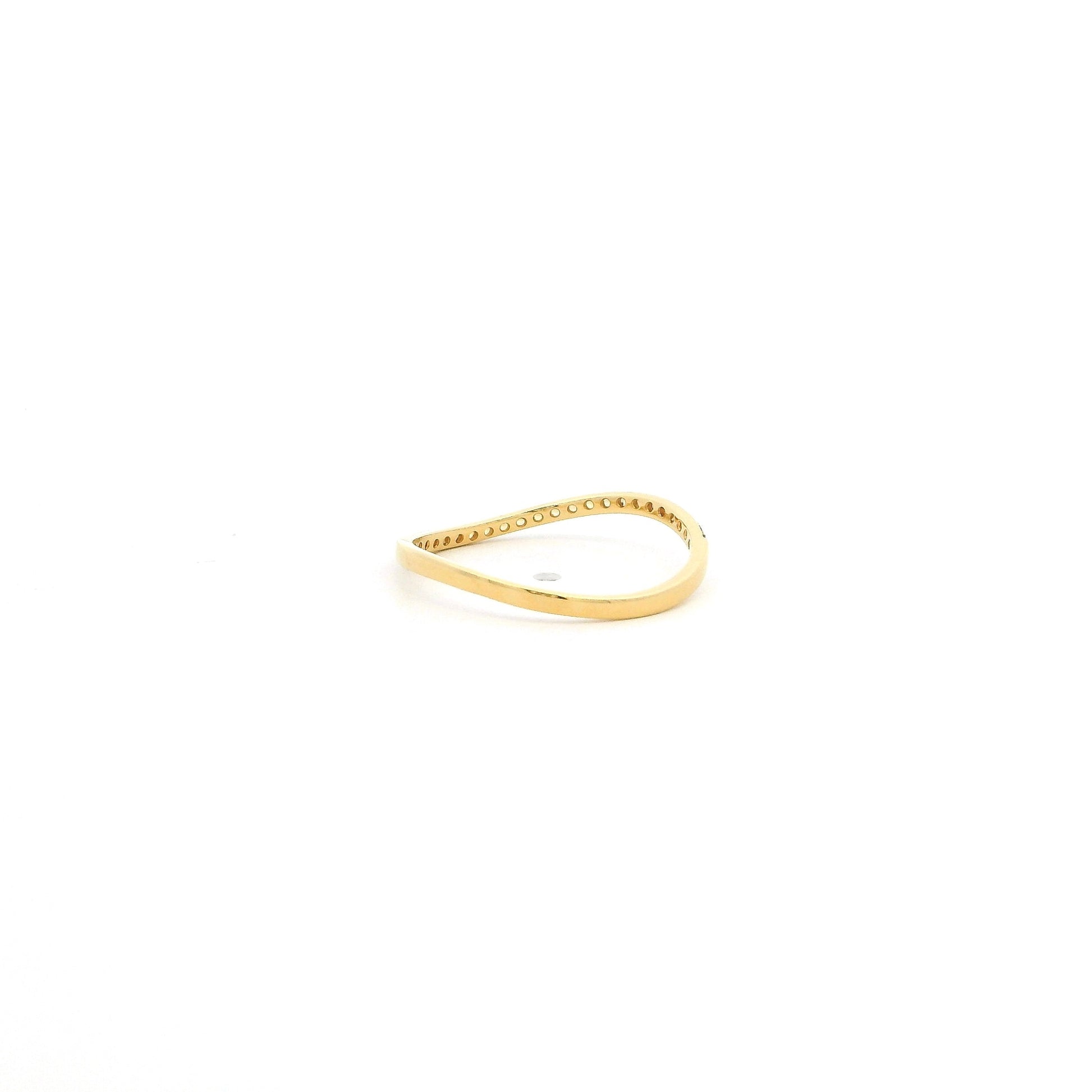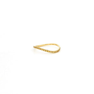Refined and contemporary, this 18ct Yellow Gold Citrine Ring – Sleek Pavé Set Curved Band offers a graceful interpretation of modern jewellery design. A row of warm, golden citrine gemstones is delicately pavé set along a gently curved band, creating a fluid silhouette that sits elegantly against the finger.