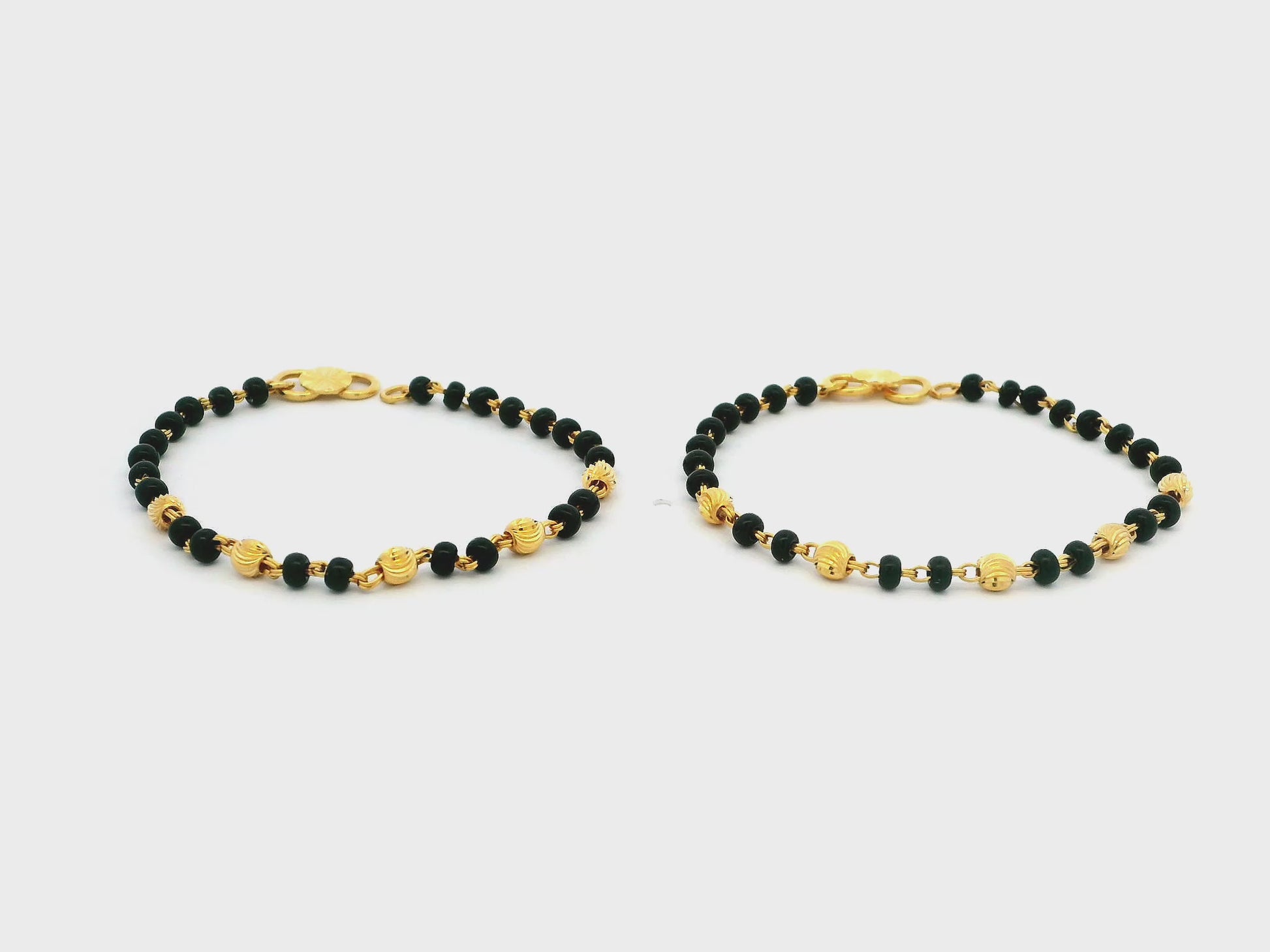 22ct Yellow Gold Child Bracelet | Black & Diamond Cut Beads | 'S' Clasp