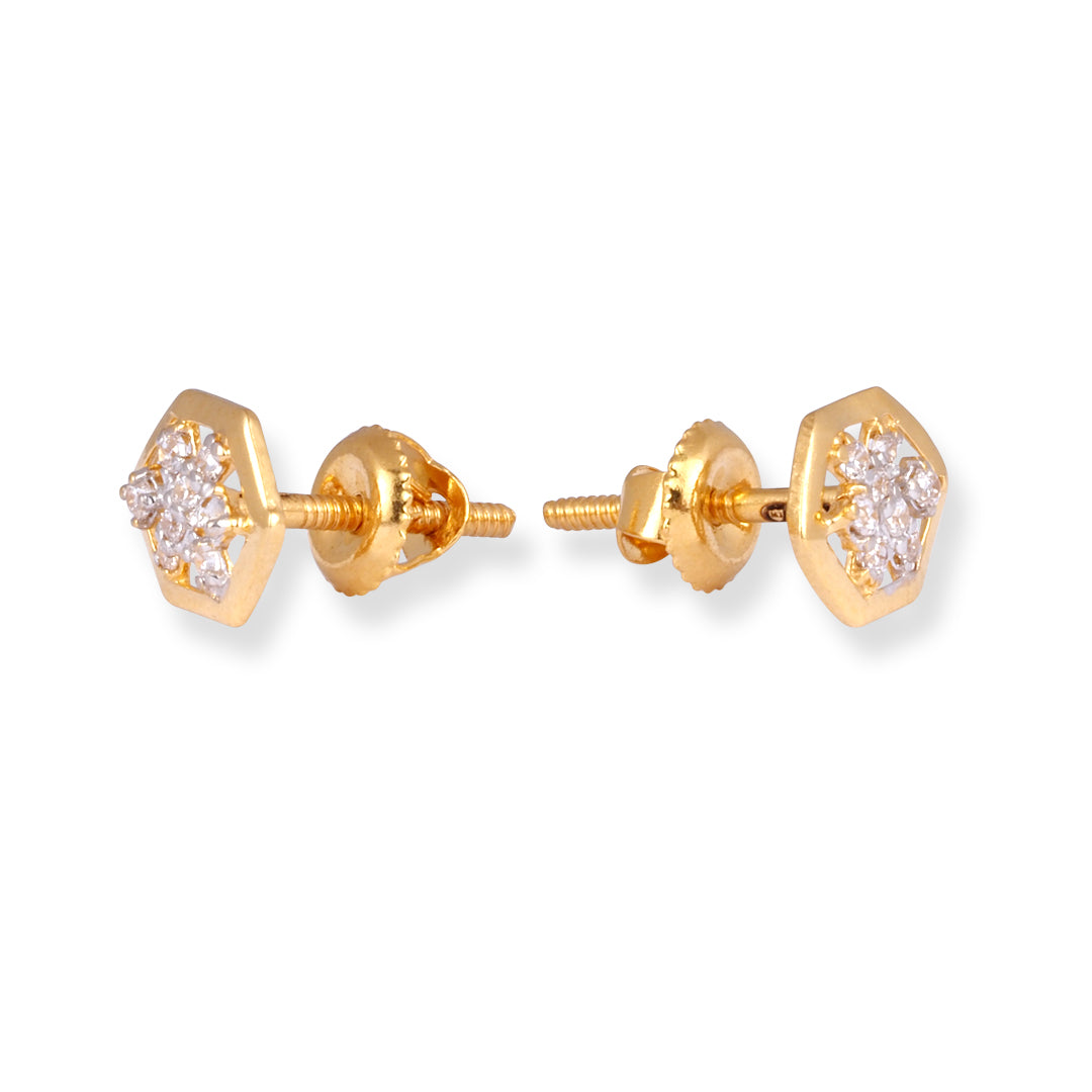 22ct Yellow Gold Cubic Zirconia Stud Earrings E-8650 - Minar Jewellers