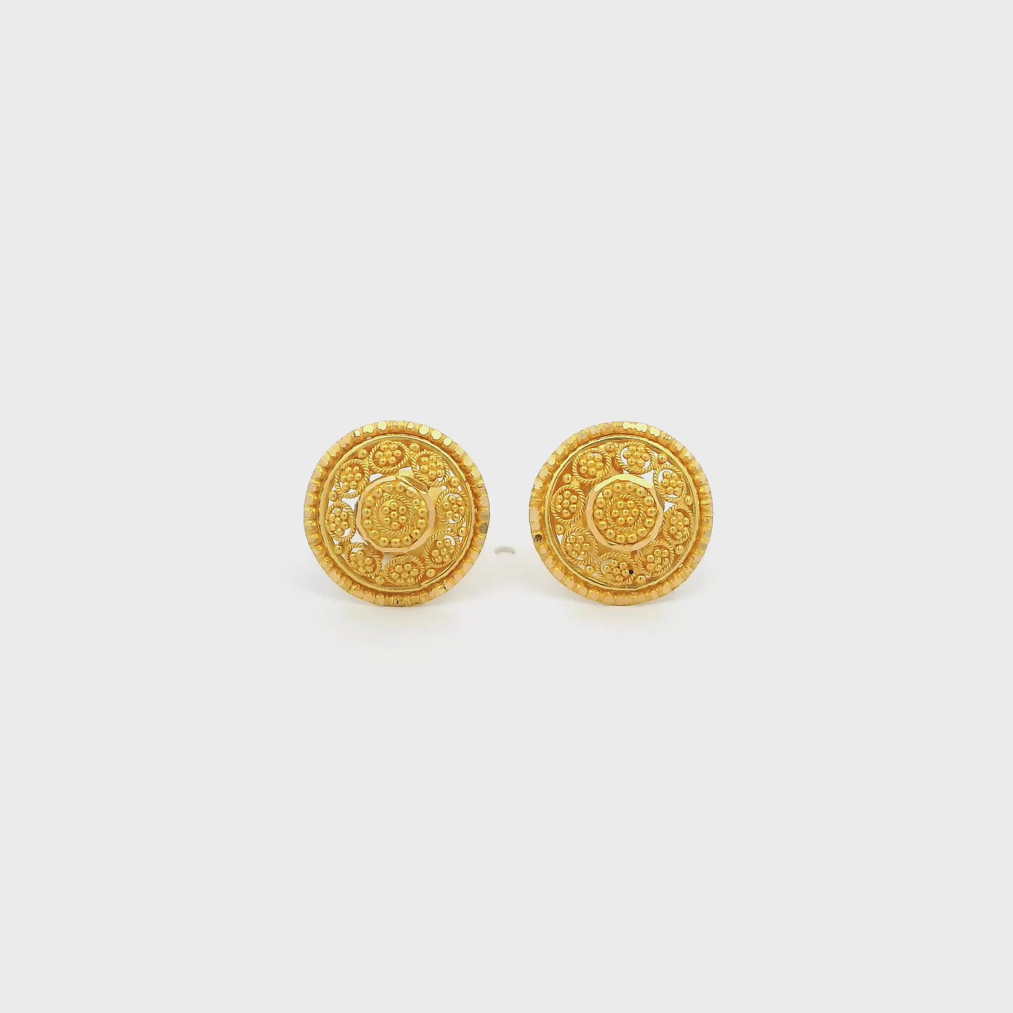 22ct Yellow Gold Filigree Screw Back Ear Studs – Intricate & Timeless Design
