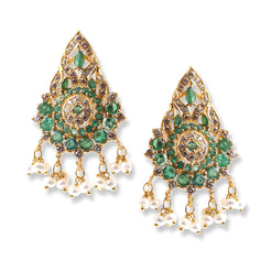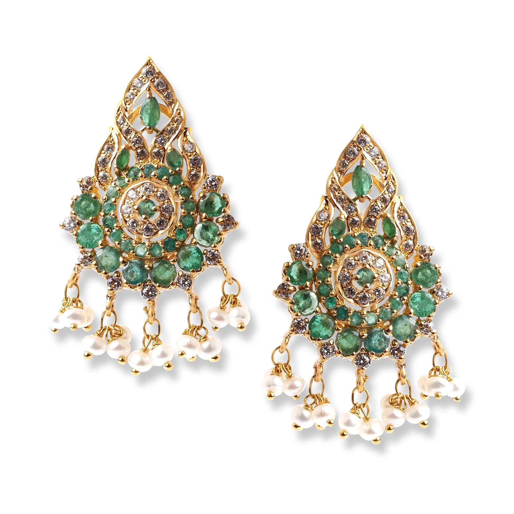 22ct Gold Set with Green Cubic Zirconia Stones & Cultured Pearls | Luxury jewellery pieces