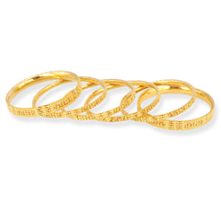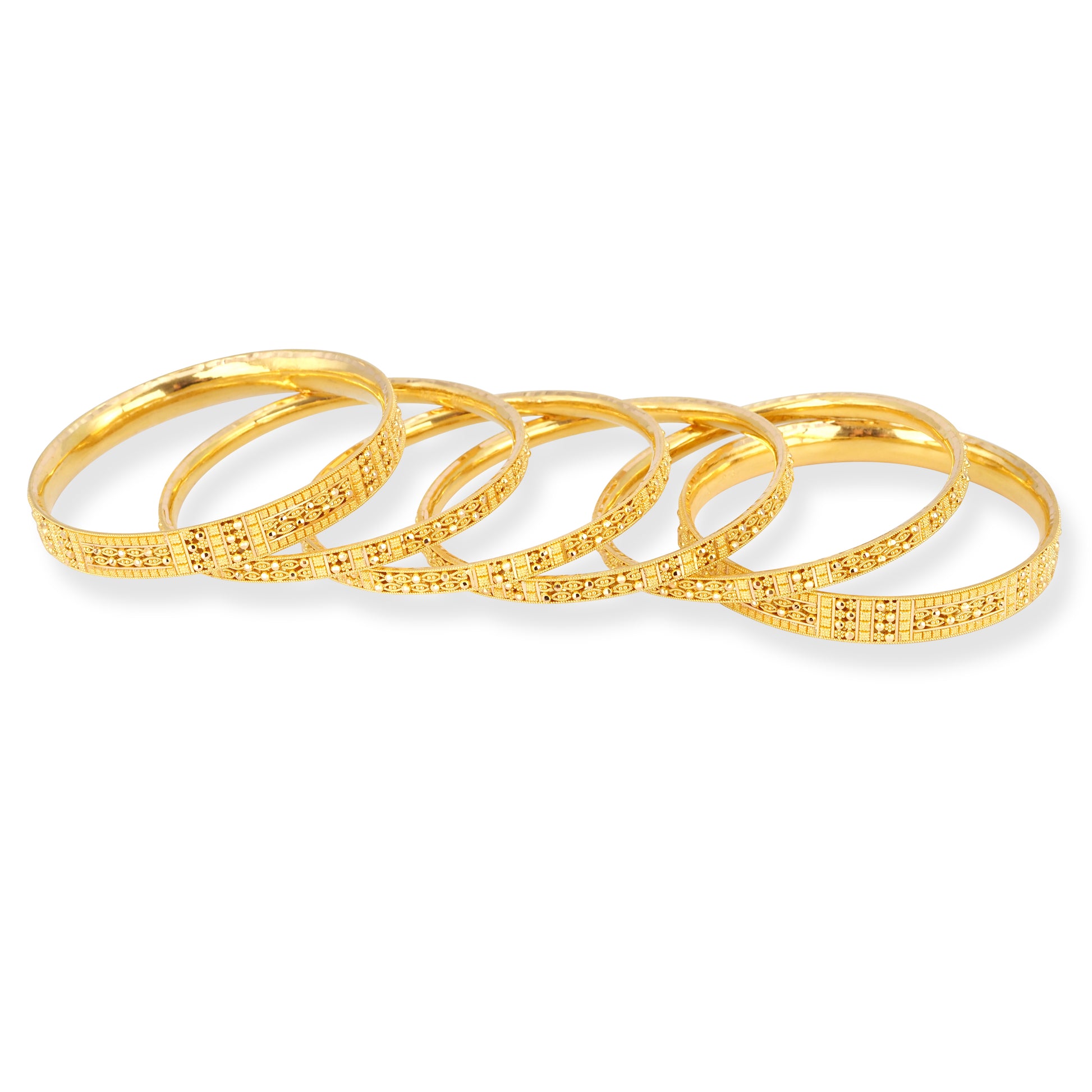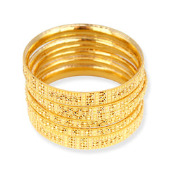 Set of Six 22ct Gold Bangles with Filigree Design and Comfort Fit.