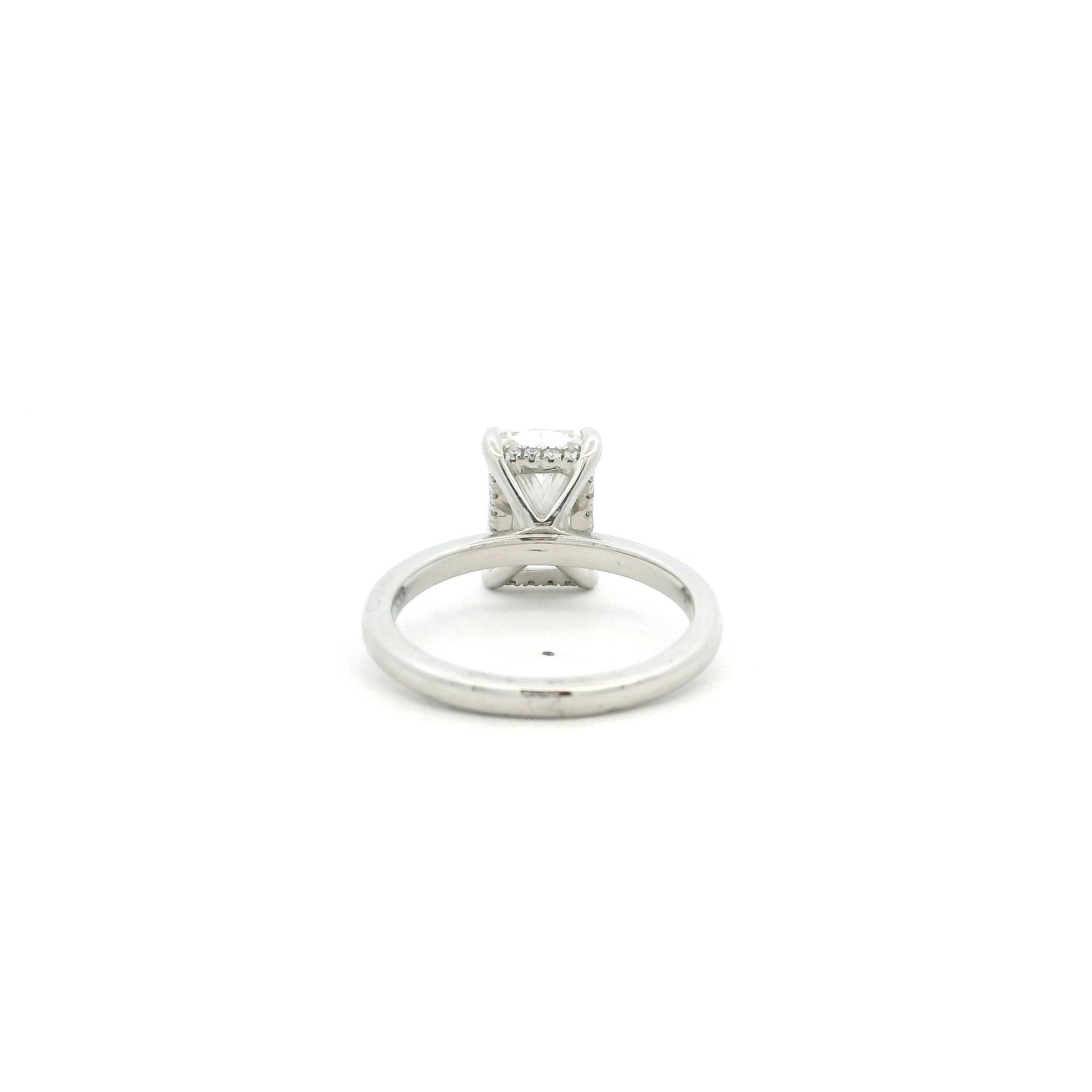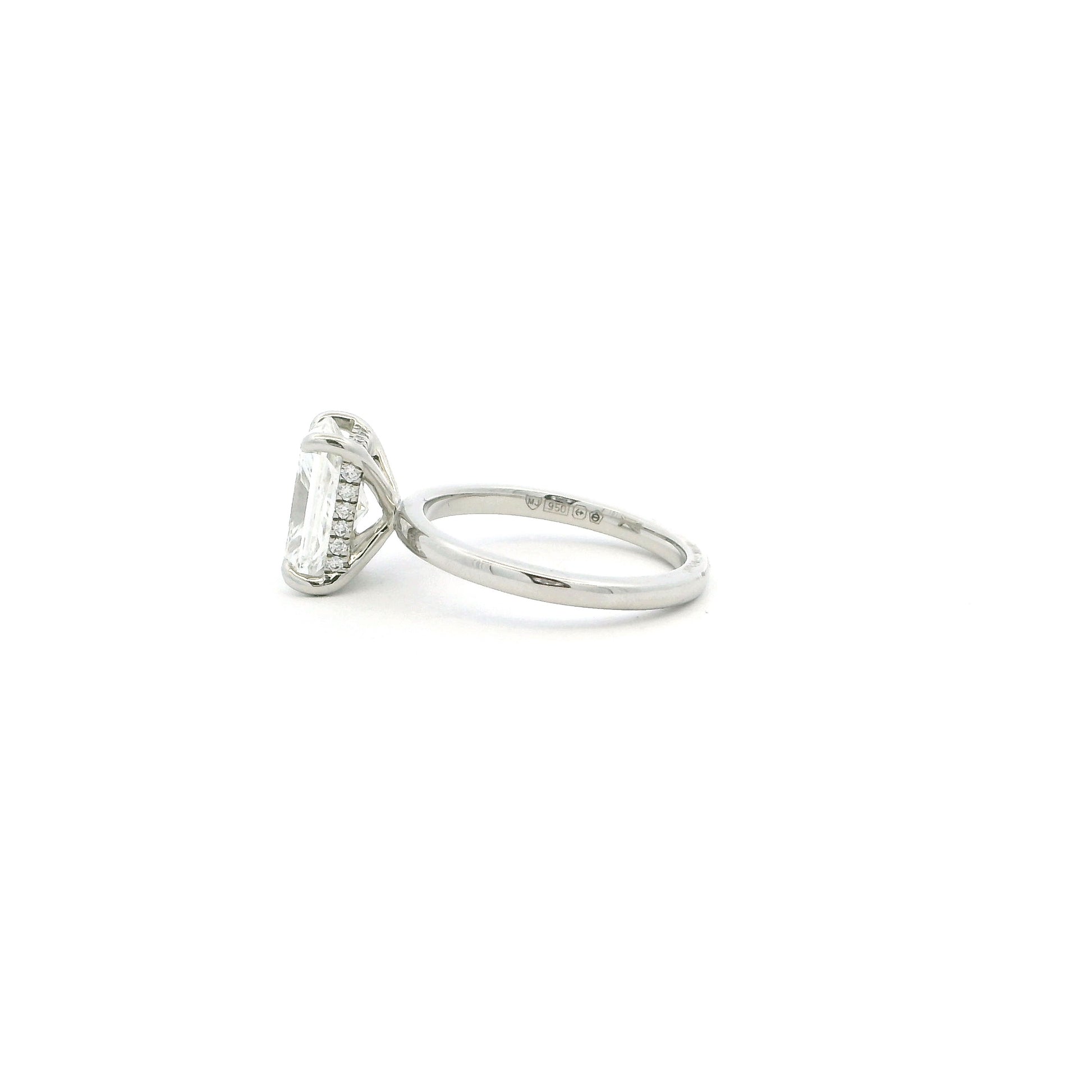 Platinum Radiant Cut Lab Diamond Ring – Hidden Halo & Tiger Claw Setting | Size L