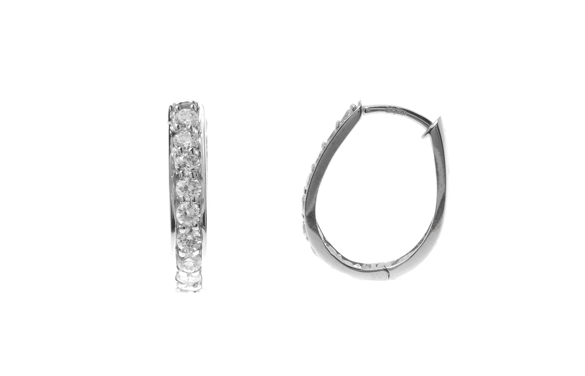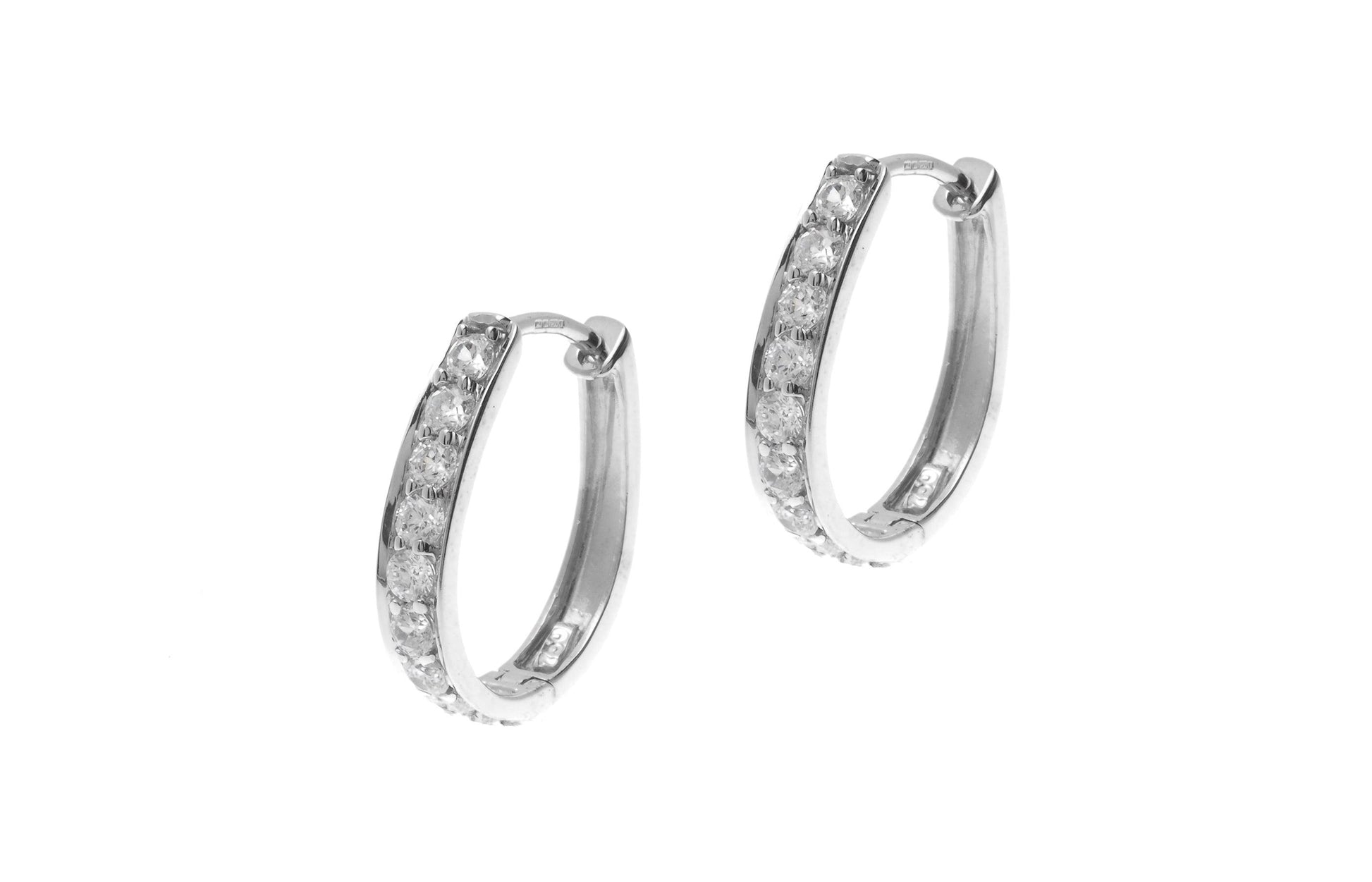 Step into a world of sophistication with our 18ct White Gold Hoop Earrings, exquisitely set with sparkling Cubic Zirconia stones. These earrings are the epitome of timeless elegance, perfect for those who appreciate the finer things in life. The lustrous white gold provides a stunning backdrop for the dazzling stones, creating a look that is both classic and contemporary.