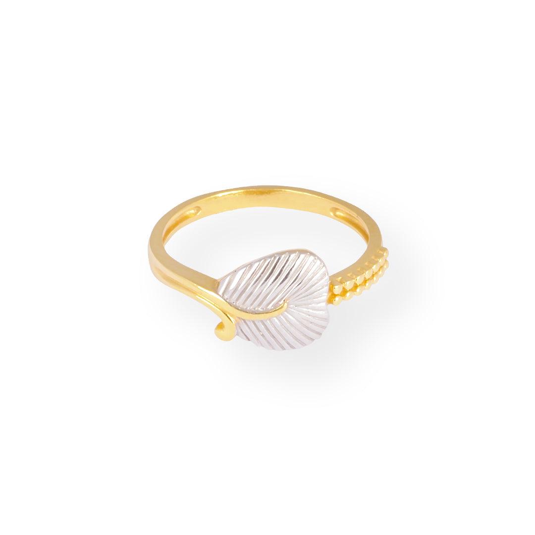 22ct Gold With Rhodium Plated Leaf Dress Ring PLR14146 - Minar Jewellers