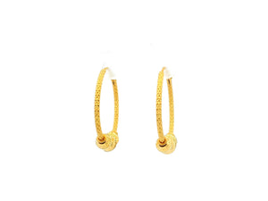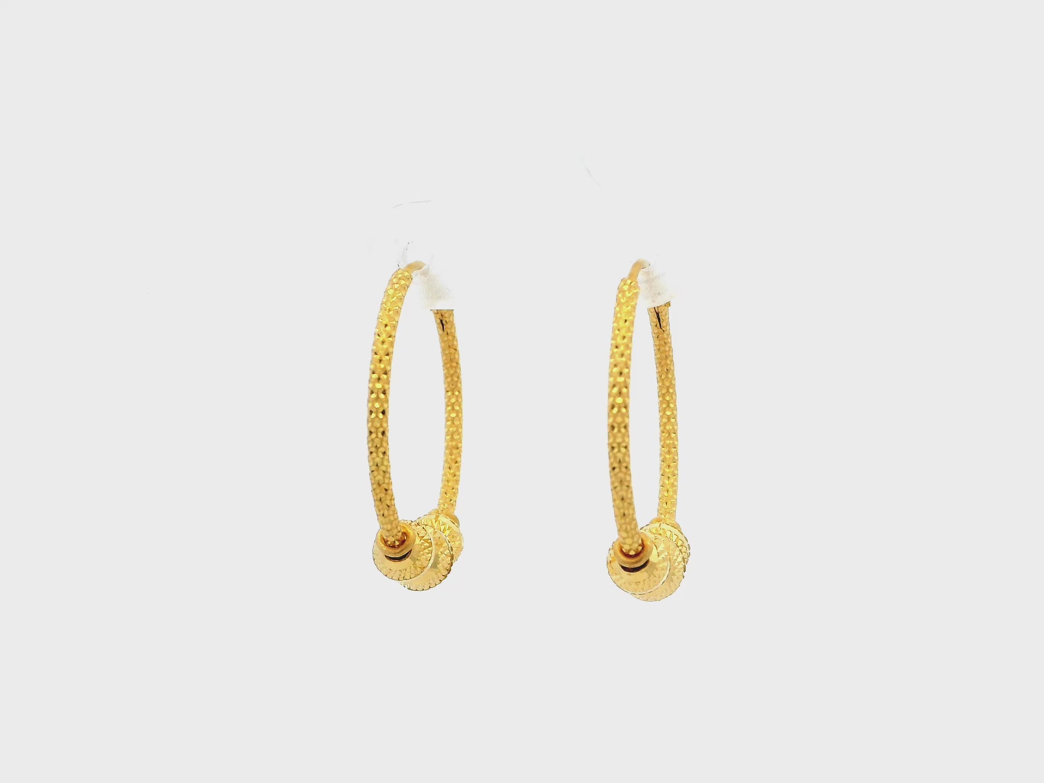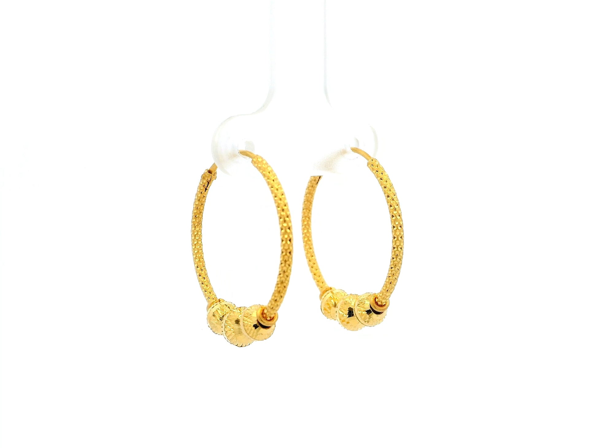 These elegant 22ct gold hoop earrings feature a beautifully textured pattern along the hoops, paired with intricately polished gold beads for added charm and movement. Lightweight and comfortable for daily wear, they bring together traditional craftsmanship and timeless style. Perfect for gifting or enhancing your everyday jewellery collection, these hoops offer a radiant, classic finish crafted in rich 22ct gold.