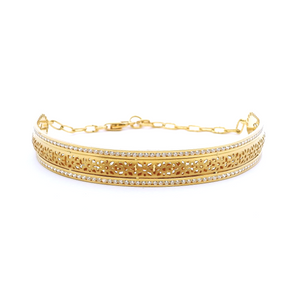 22ct Yellow Gold Women's Bangle Bracelet with Cubic Zirconia Stones – Adjustable Links & Lobster Claw Clasp for Perfect Fit