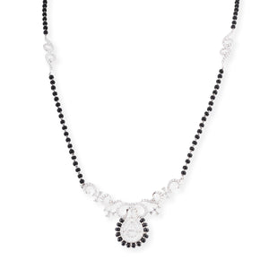 Crafted in luxurious 18ct white gold, this designer mangalsutra necklace is adorned with sparkling diamonds that embody elegance and grace. Blending modern sophistication with traditional symbolism, it is an exquisite choice for brides seeking timeless beauty and refinement on their special day.