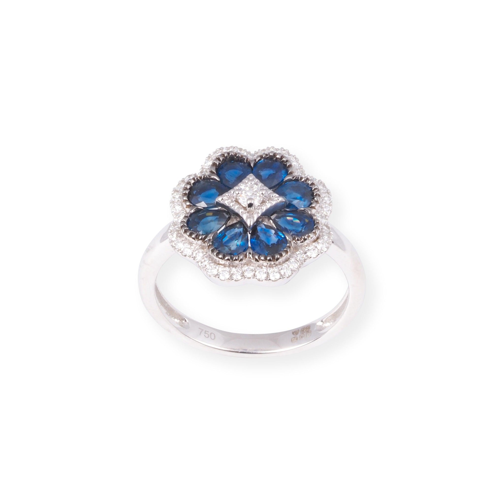 • 18ct White Gold Diamond and Blue Sapphire Cluster Ring LR-7030