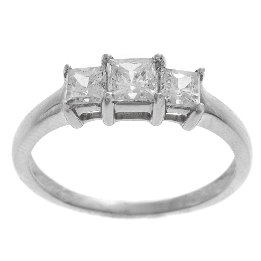 • 18ct White Gold Cubic Zirconia Trilogy Ring LR-2372