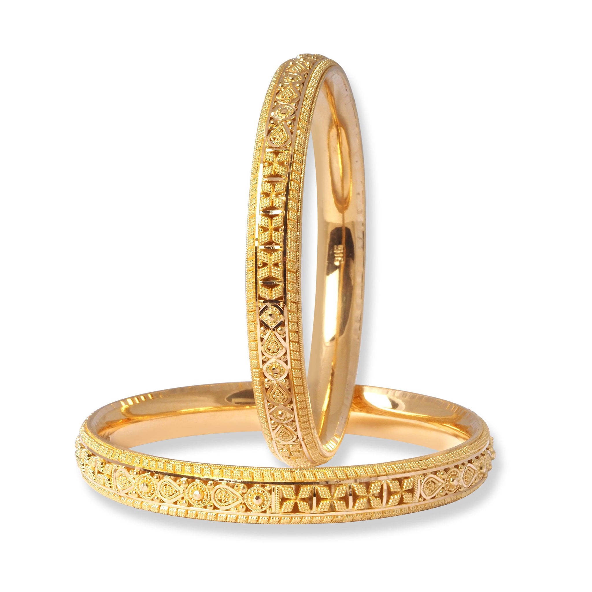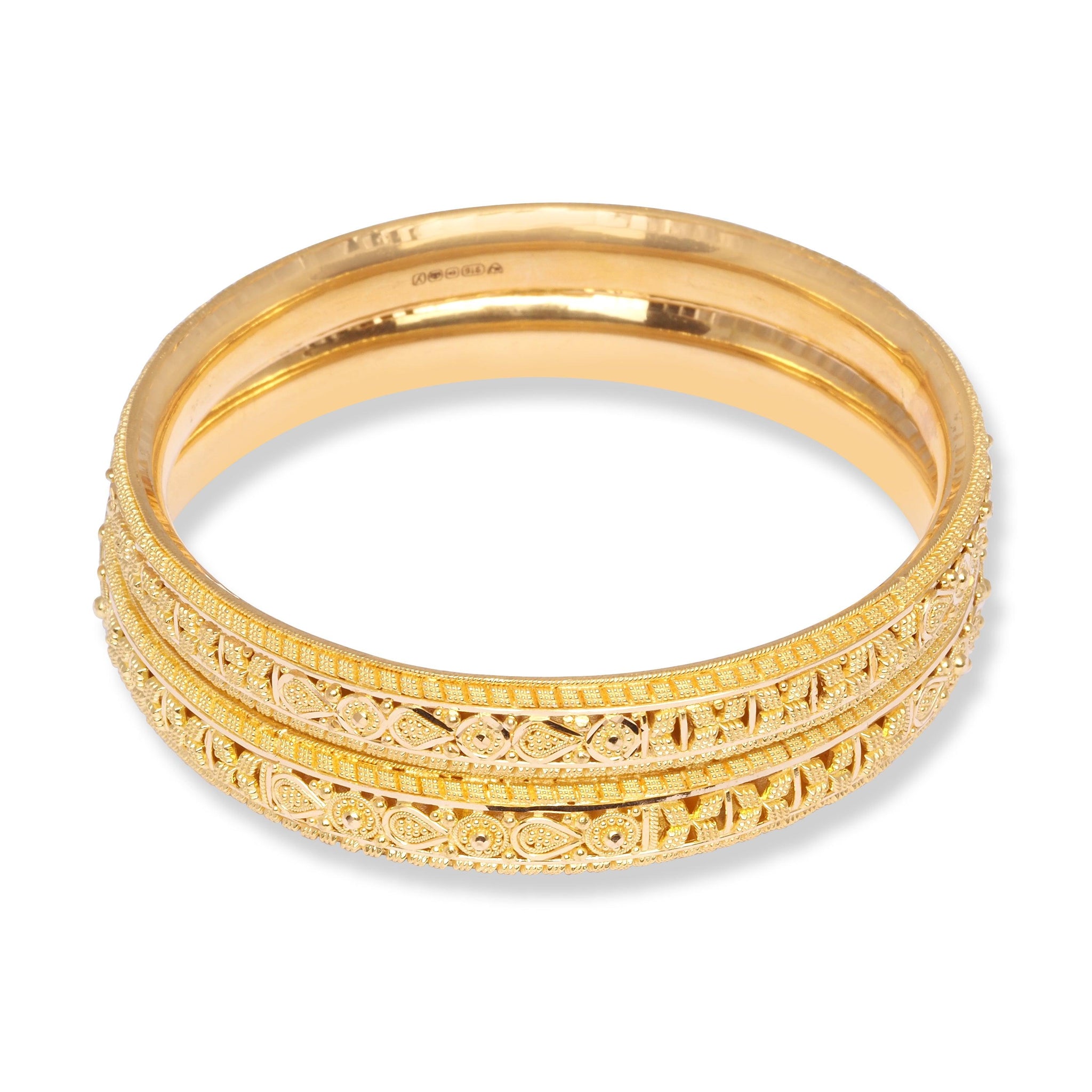 22ct Gold Pair of Bangles with Filigree Work & Comfort fit Finish B-8555 - Minar Jewellers
