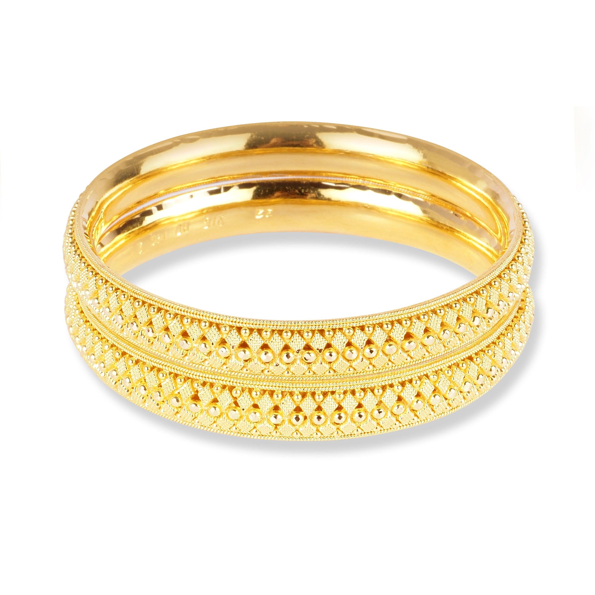 22ct Gold Set of Two Bangles with Filigree Work in Comfort Fit Finish - Intricate Gold Bangles Set