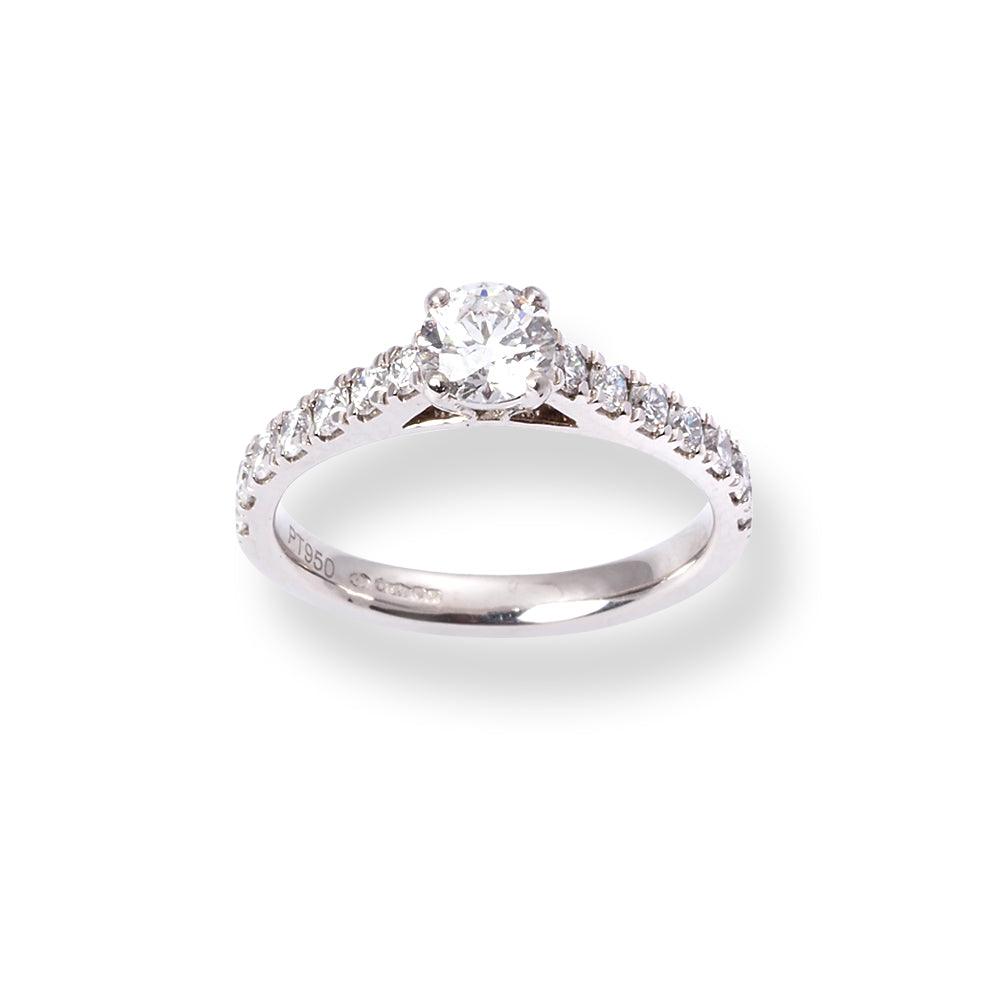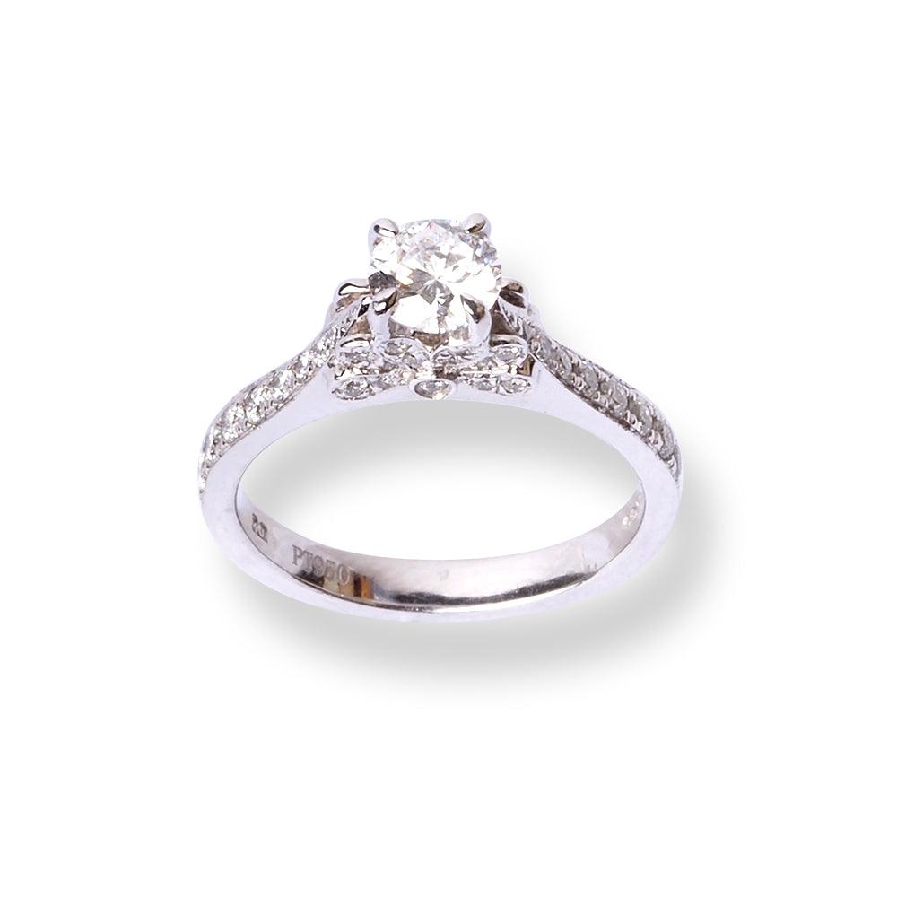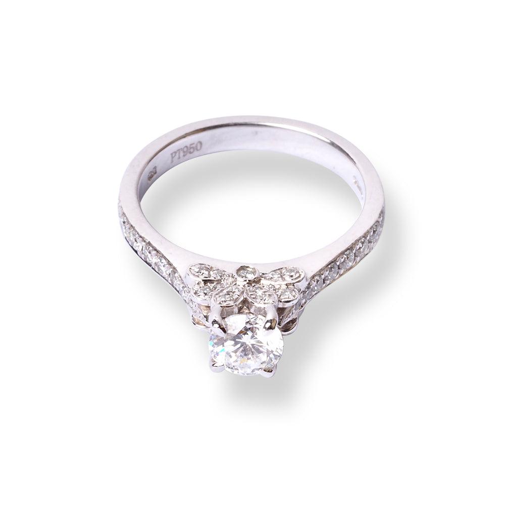 • Platinum Engagement Ring with 'Round' Cut Diamond On Shoulder LR-6705