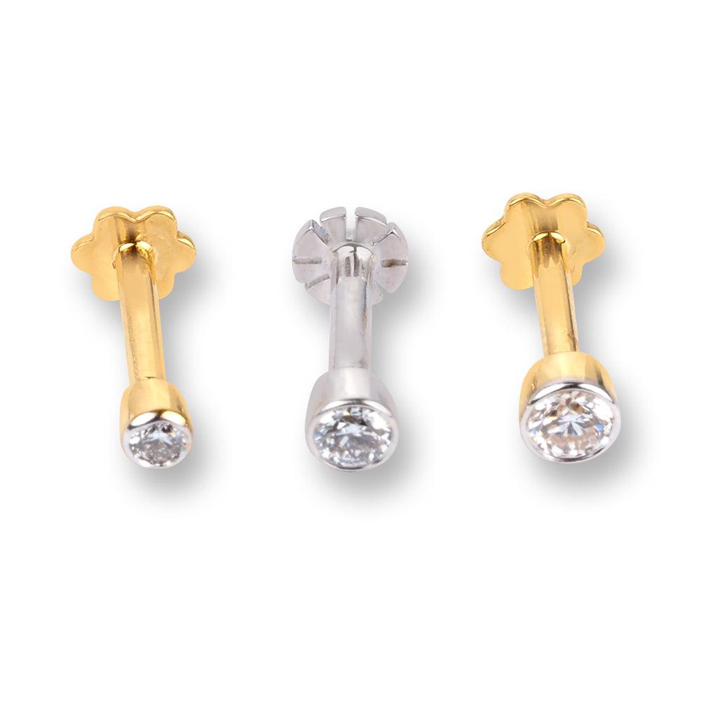 18ct Gold Diamond Screw Back Nose Stud with Bezel (Rub Over) Setting MCS2513 MCS2514 MCS2515 - Minar Jewellers