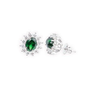 18ct White Gold Diamond & Green Garnet Earrings - Natural gemstone earrings