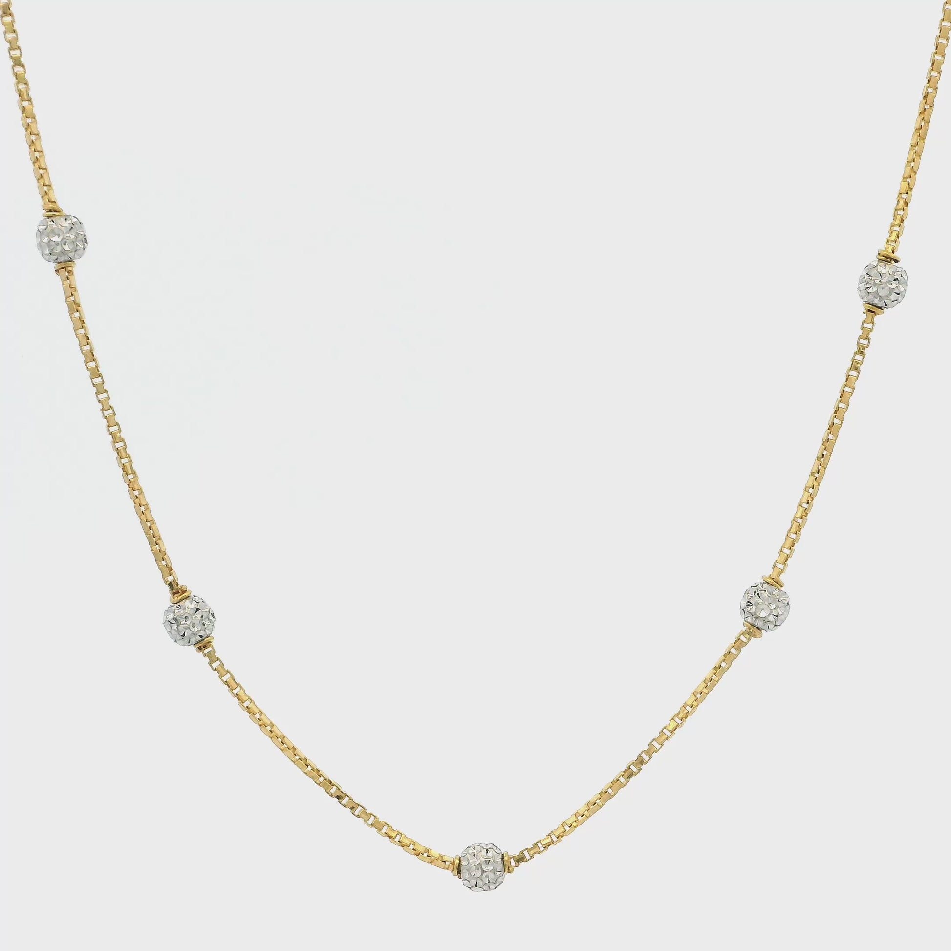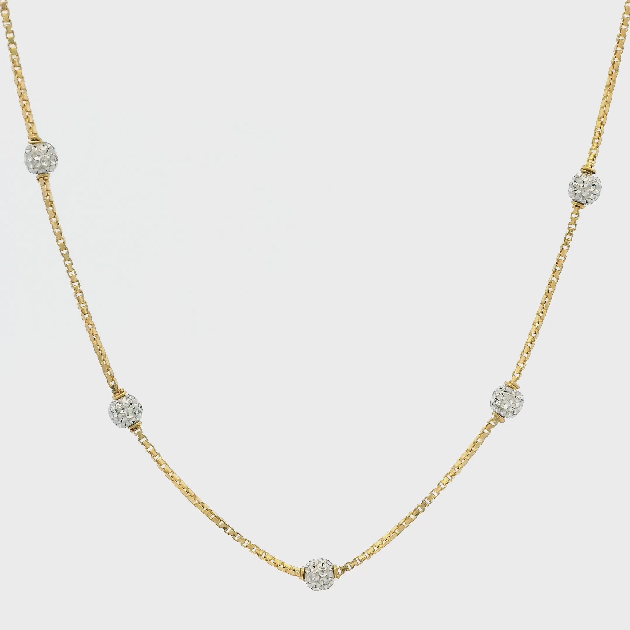 22ct_Gold_Box_Chain_with_Rhodium_Diamond-Cut_Beads_Hook_Clasp_Elegant_Timeless_18_Inches