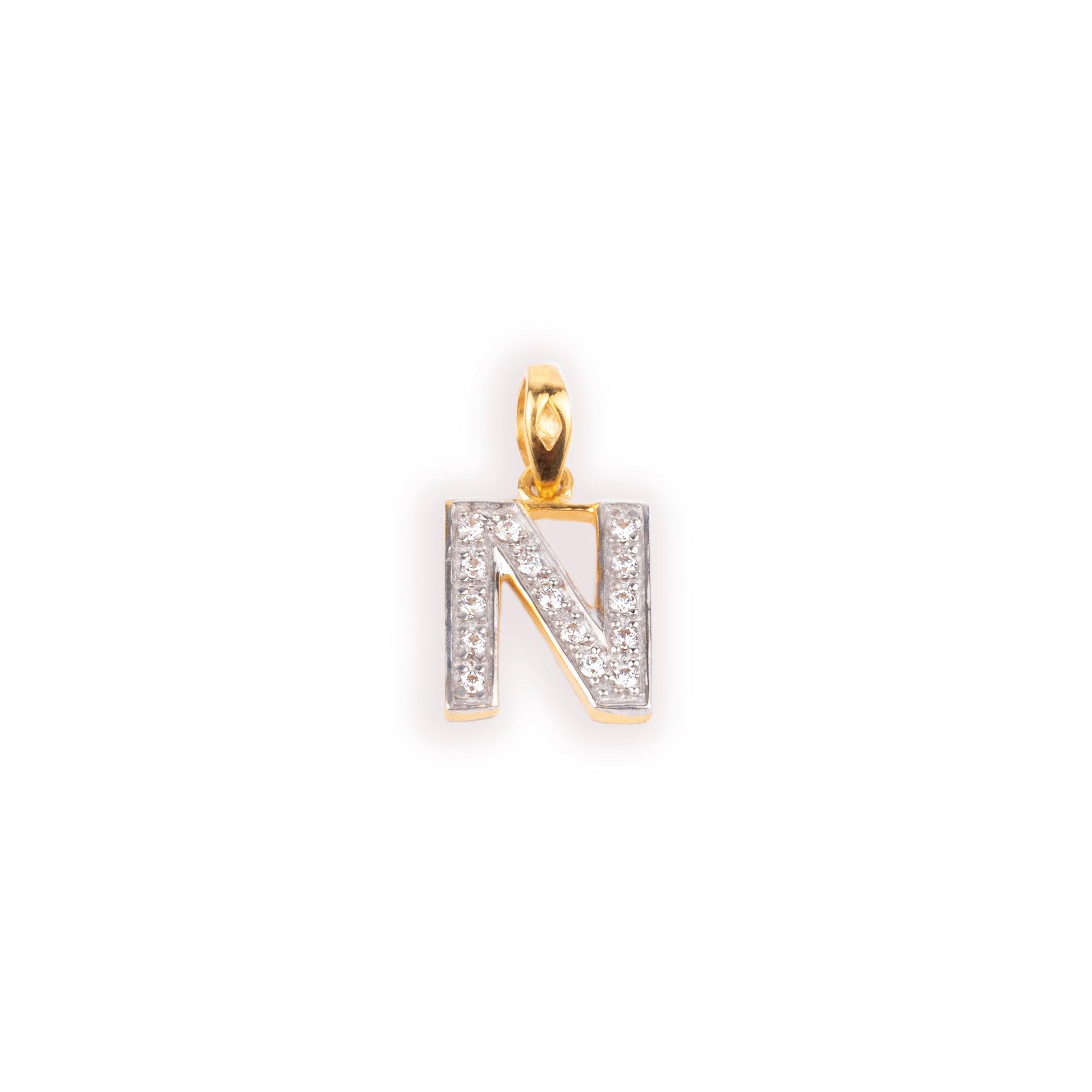'N' 22ct Gold Swarovski Zirconia Initial Pendant P-7030 - Minar Jewellers