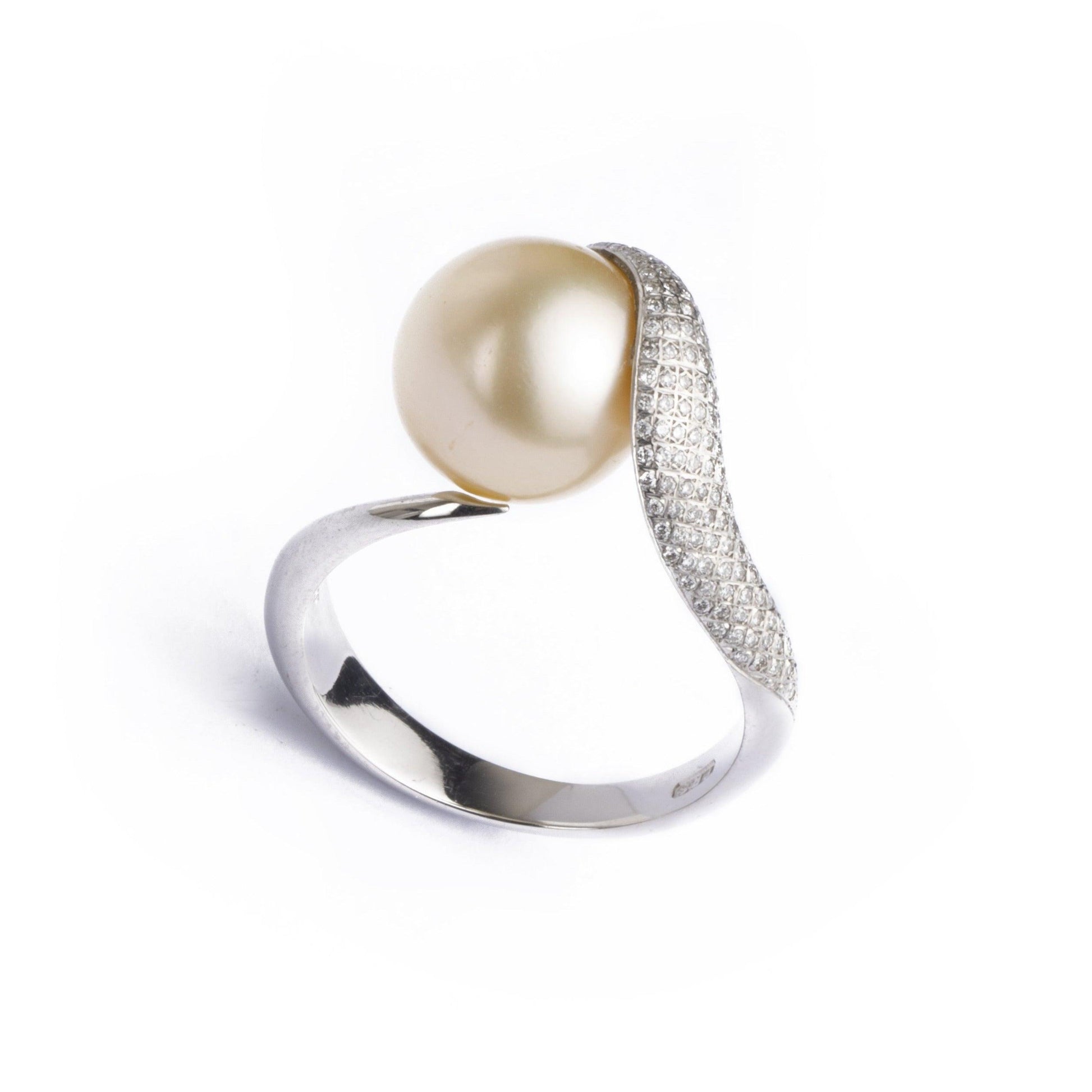 - Product code: LR-2191 PS- Available in Size S- Platinum Diamond and Pearl Ring by Award Winning Designer Paul...