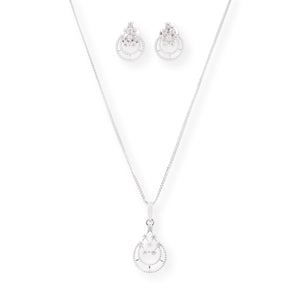 18ct White Gold Diamond Set (Pendant + Chain + Earrings) MCS4676/7 - Minar Jewellers