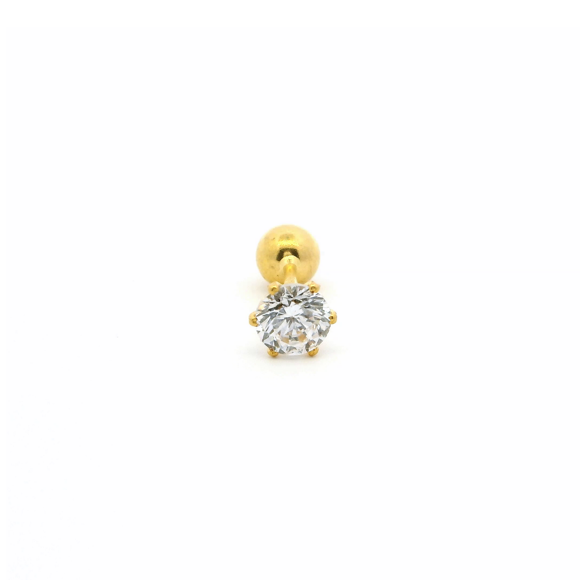 18-karaats geelgouden labret-knop met schroefdeksel.
