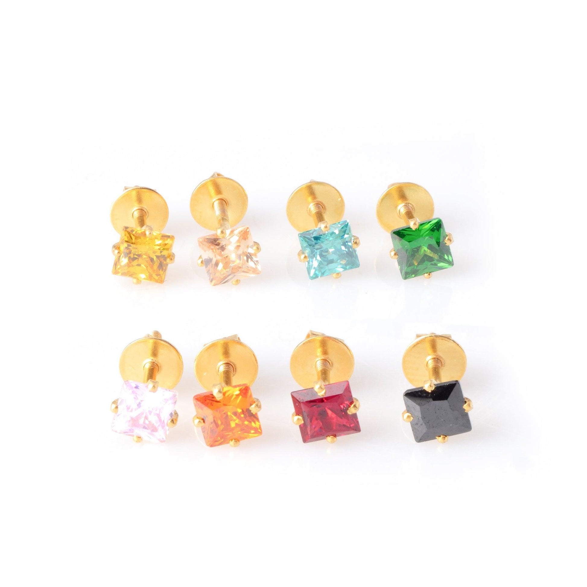 18ct Yellow Gold (with 22ct Gold Plating) Ear Studs set with Princess Cut Colour Cubic Zirconias - Minar Jewellers