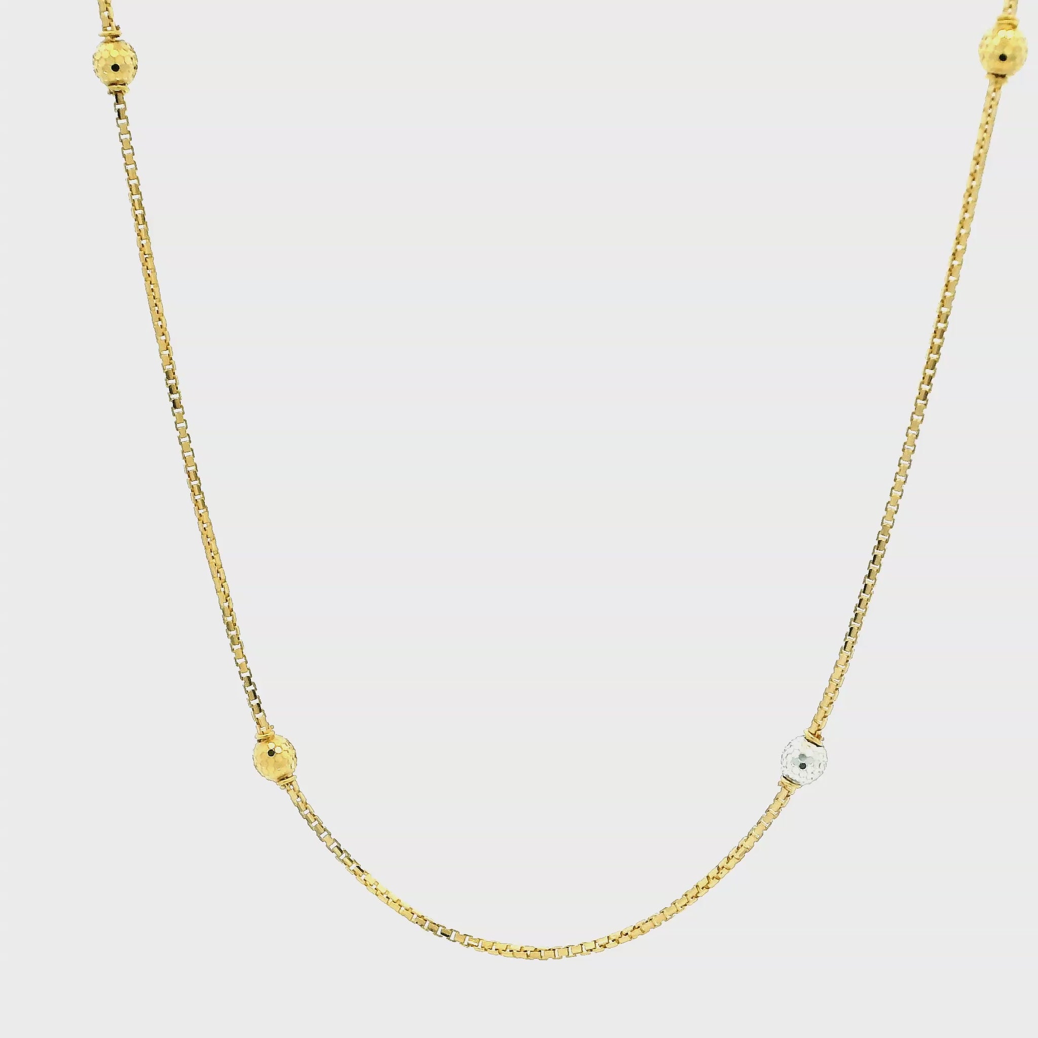 22-karaats geelgouden ketting met gouden en rhodium-geplateerde kralen op intervallen met karabijnsluiting