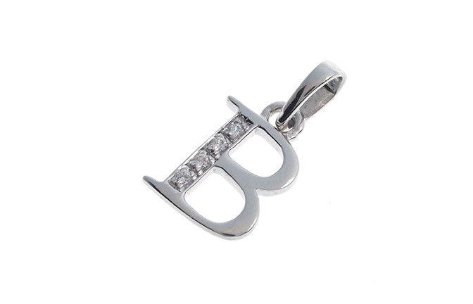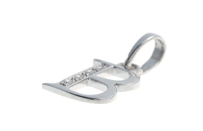 'B' Initial Pendant 18ct White Gold Cubic Zirconia (0.97g) P900B - Minar Jewellers