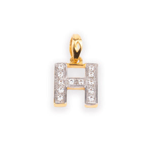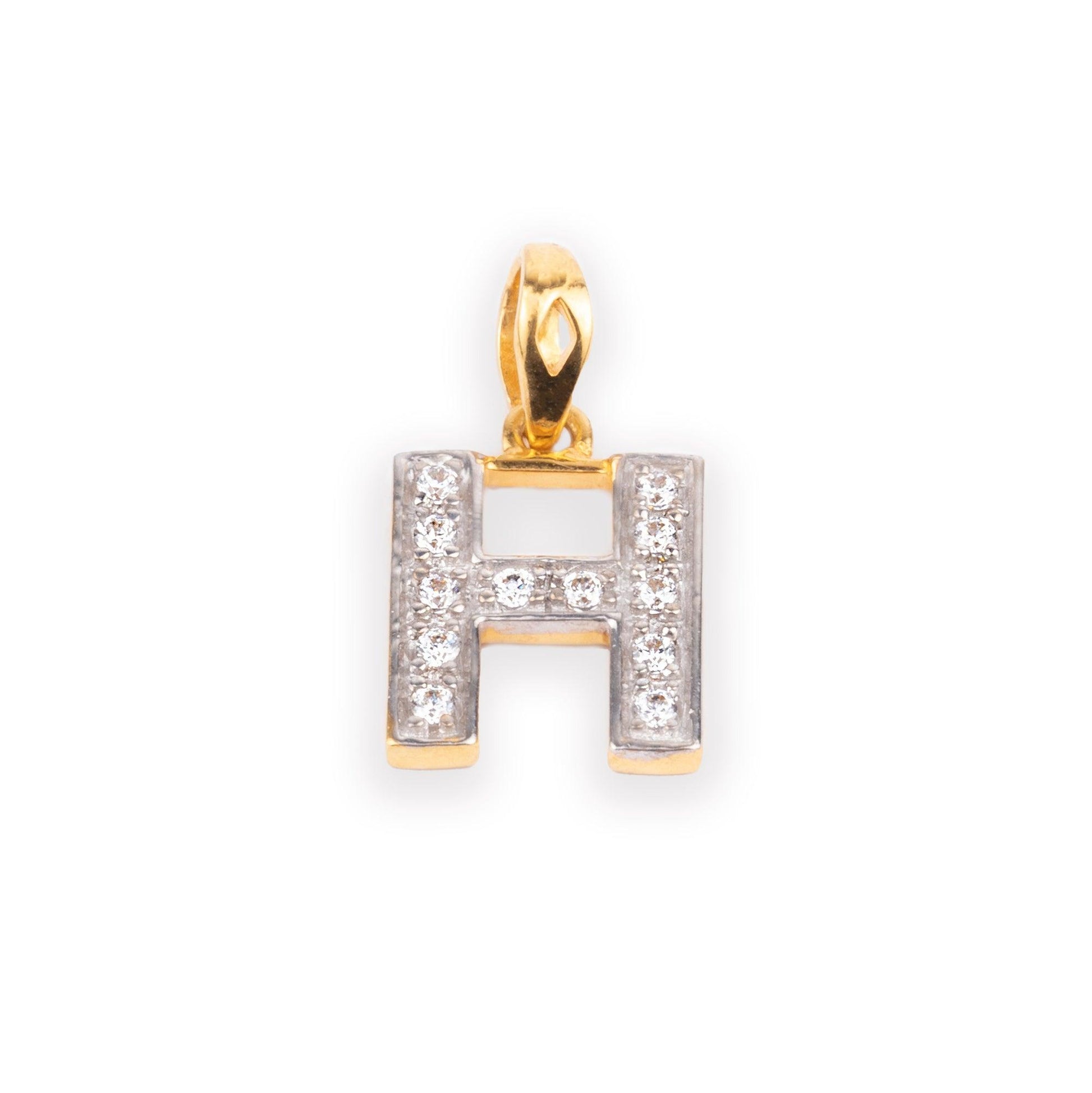 'H' 22ct Gold Swarovski Zirconia Initial Pendant P-7024 - Minar Jewellers