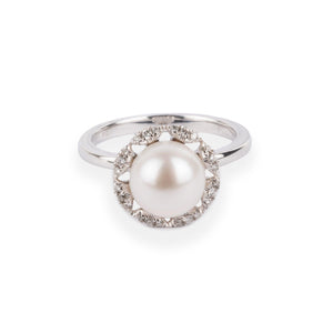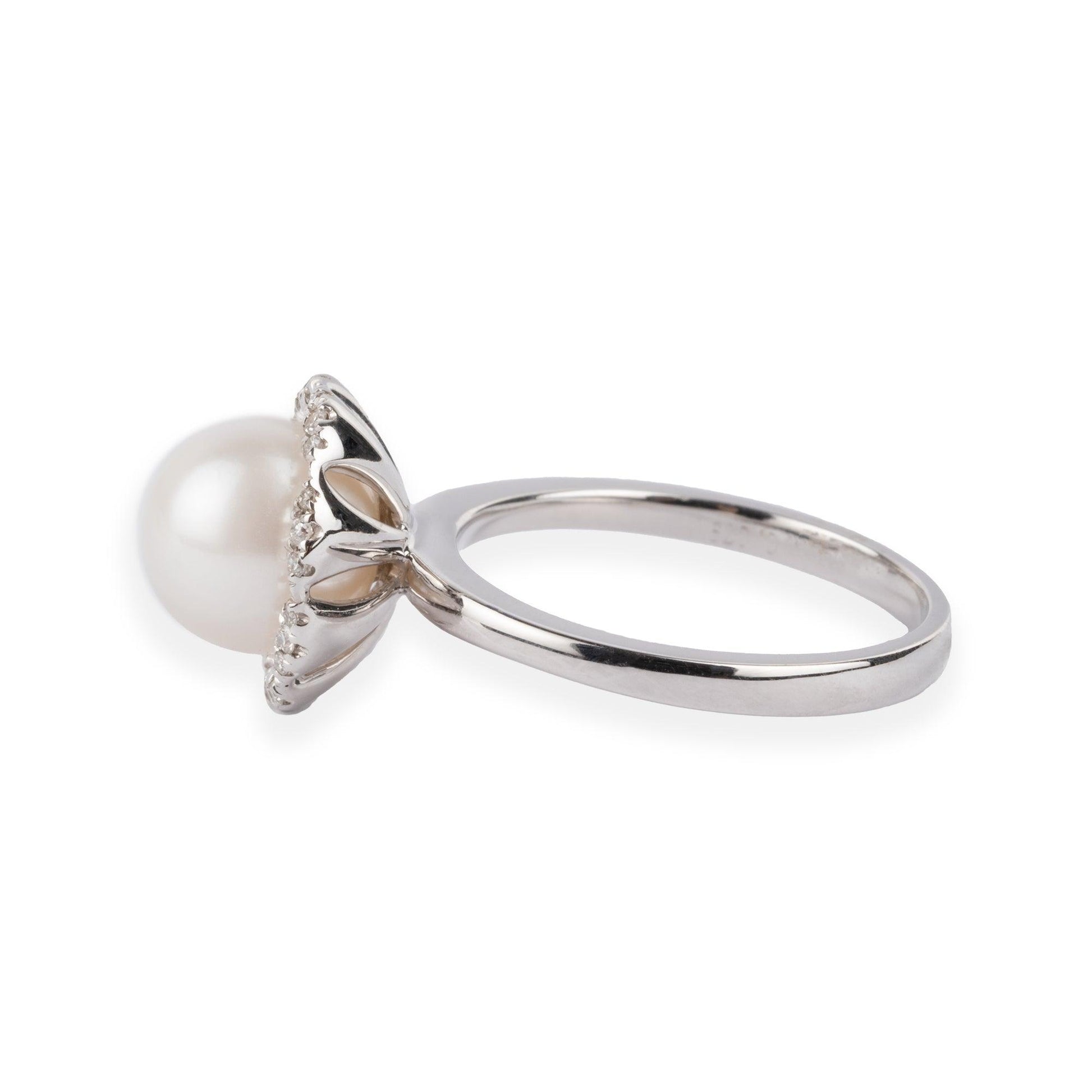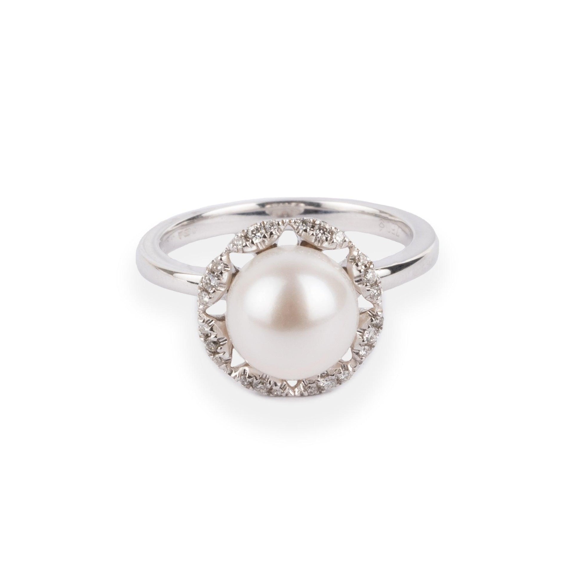 18ct White Gold Diamond & Cultured Pearl Dress Ring A-R41161-3002 - Minar Jewellers