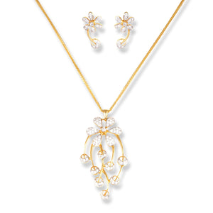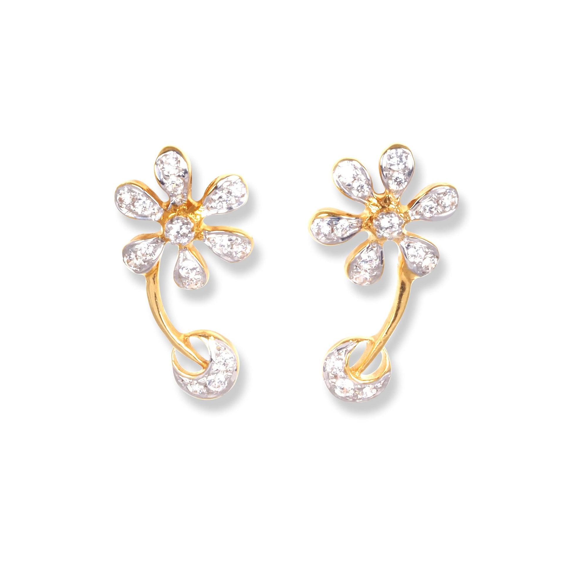 18ct Yellow Gold Floral Design Set with Cubic Zirconia Stones P-4407 - Minar Jewellers