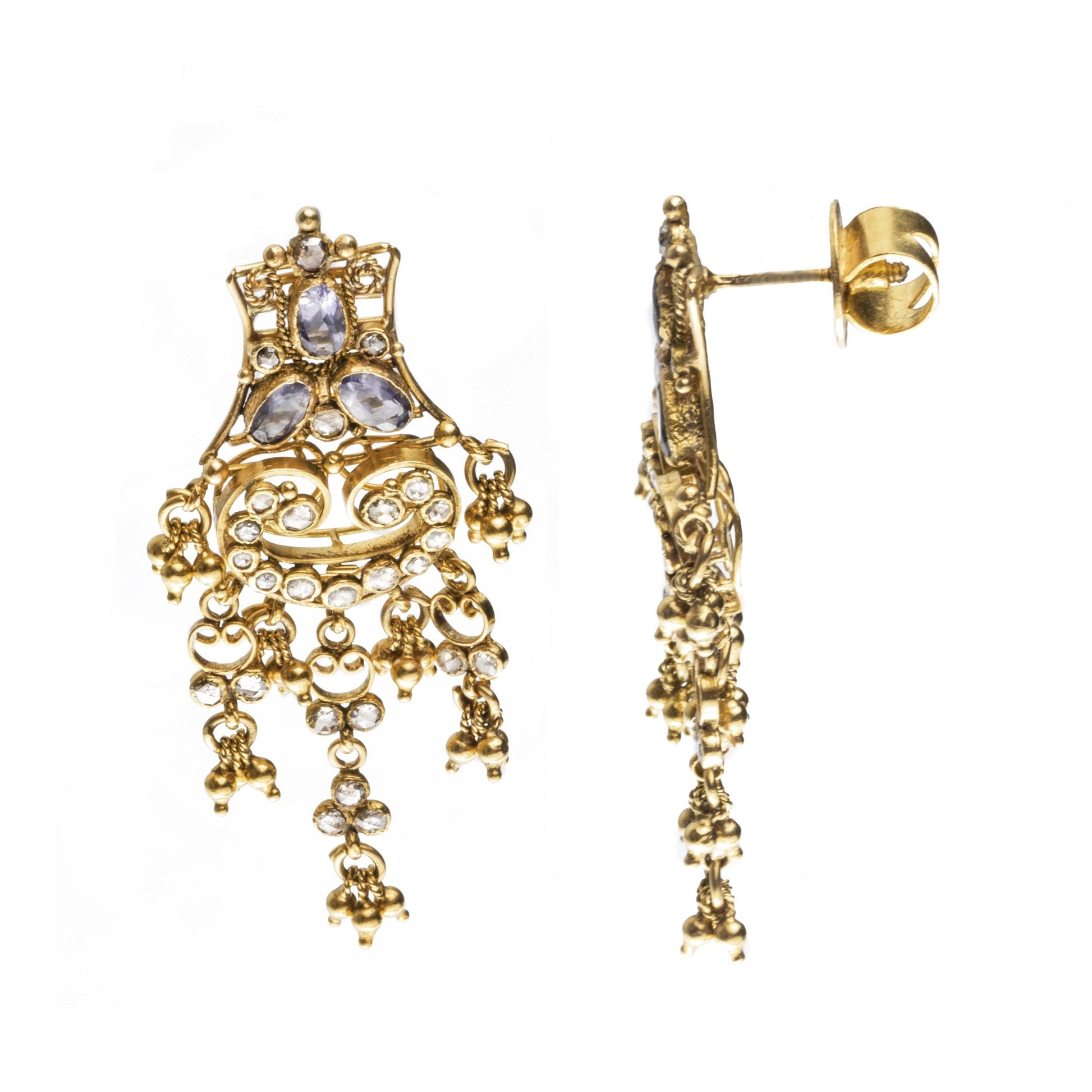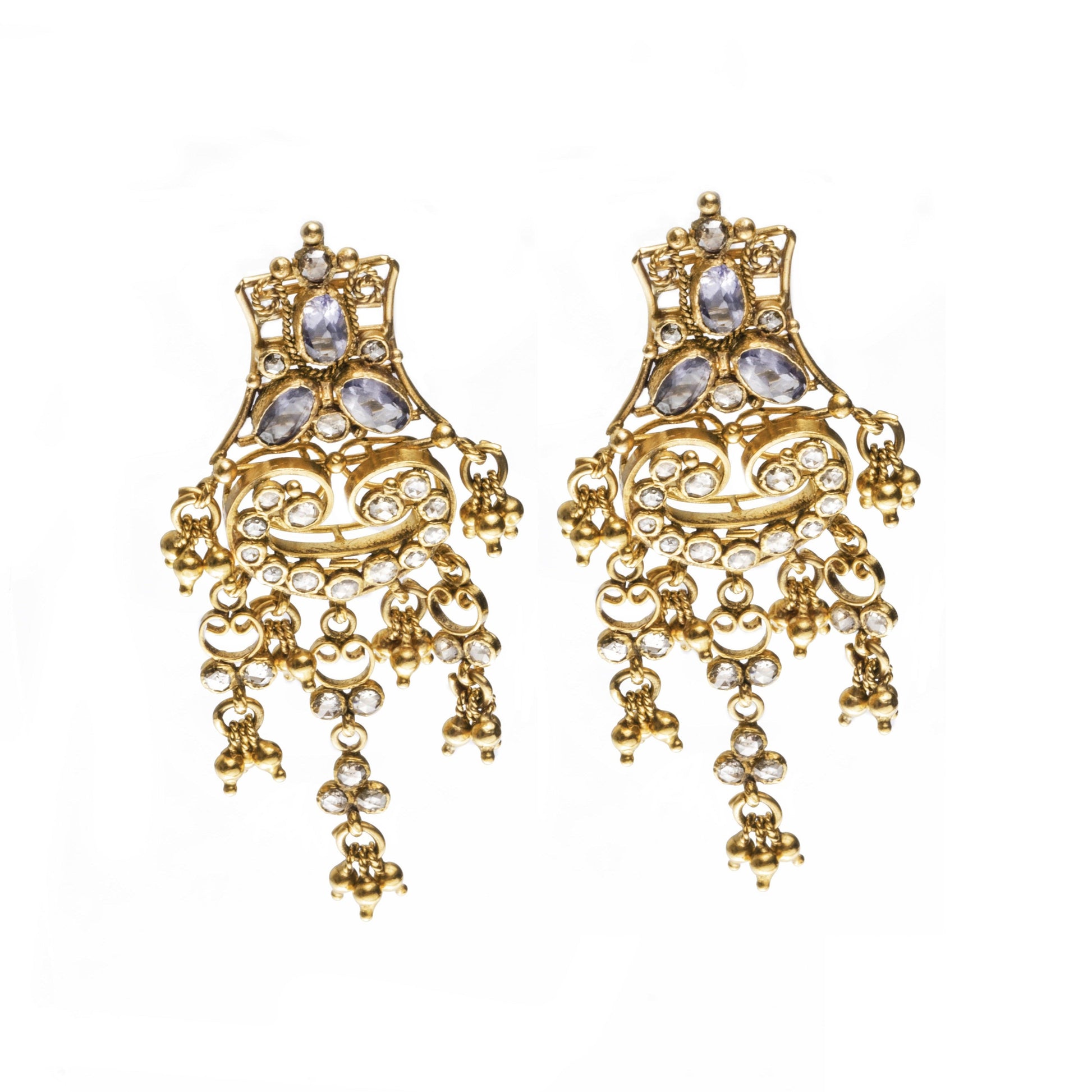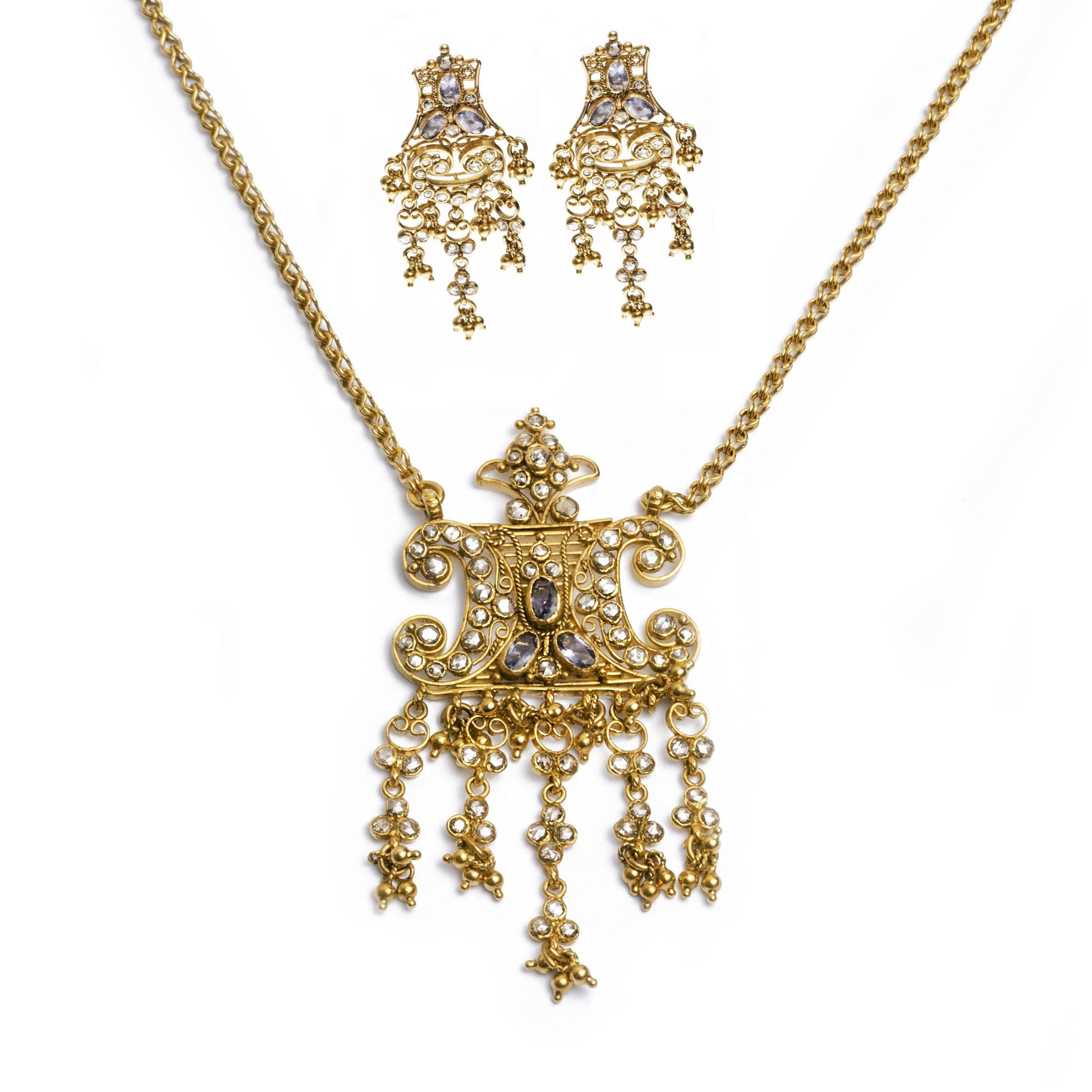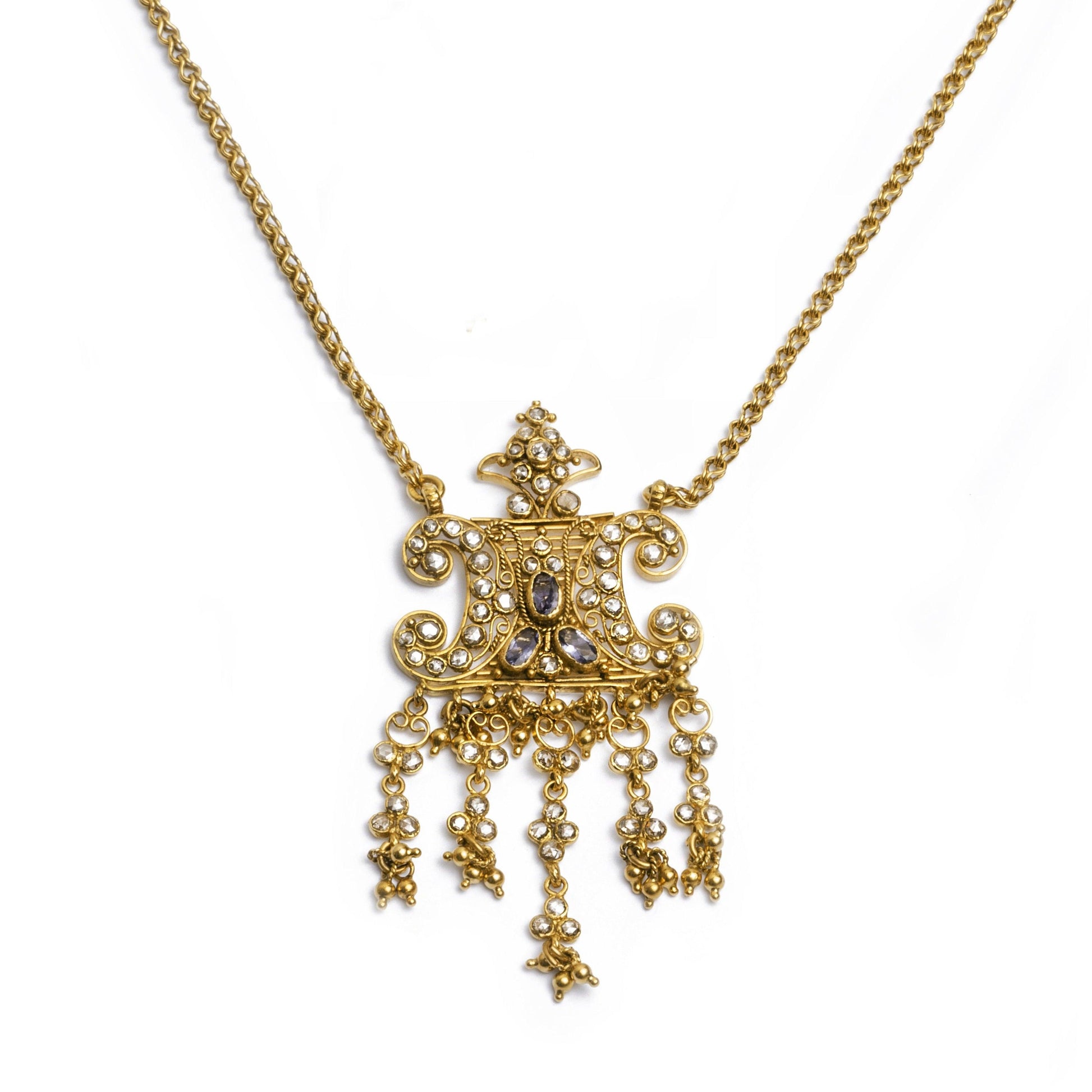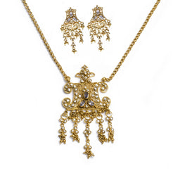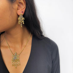 22ct Gold Champagne Diamond Necklace and Earrings set with Coloured Stones N&E-EDP2546 - Minar Jewellers