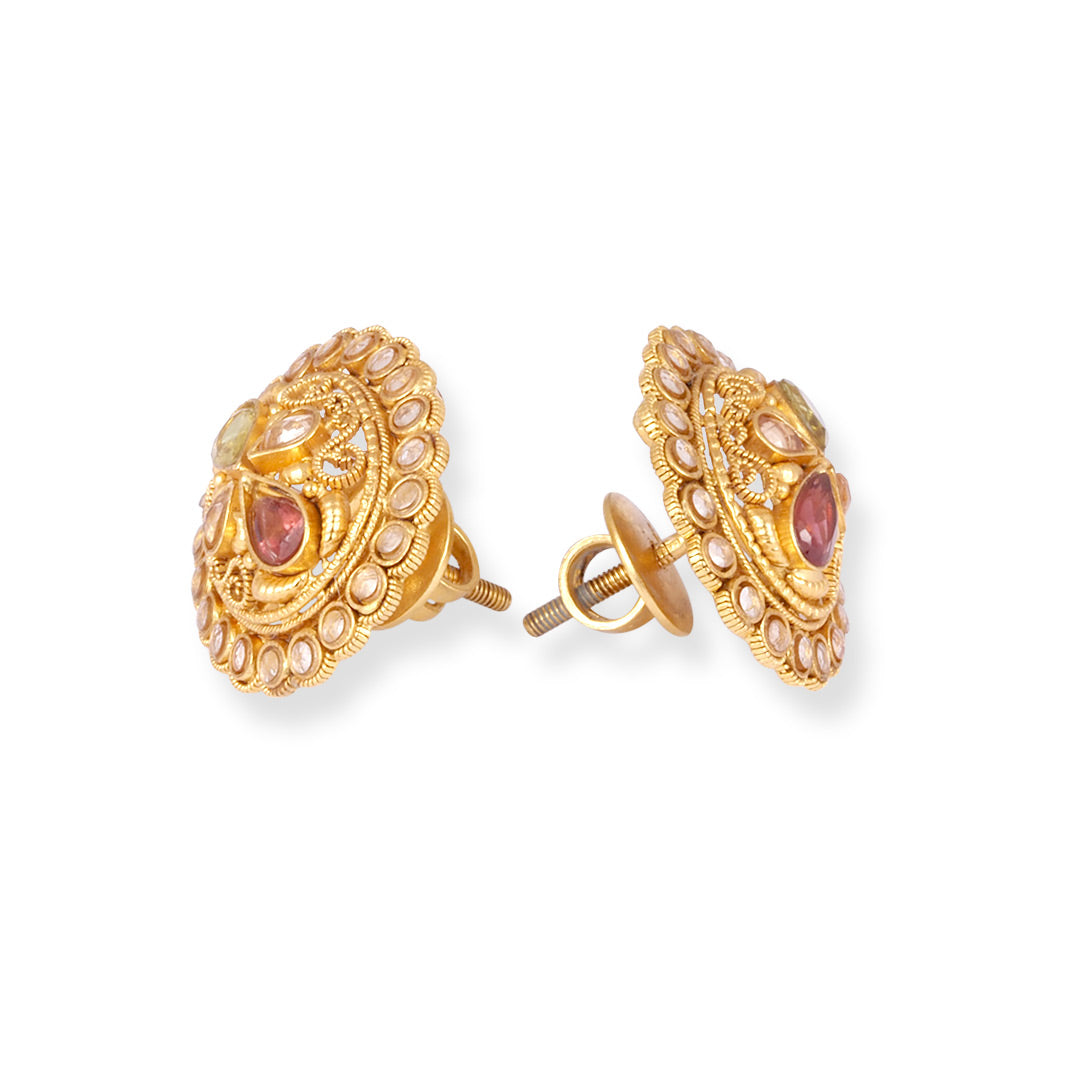 22-karaats gouden ketting en oorbellen bezet met zirkoniastenen -8623