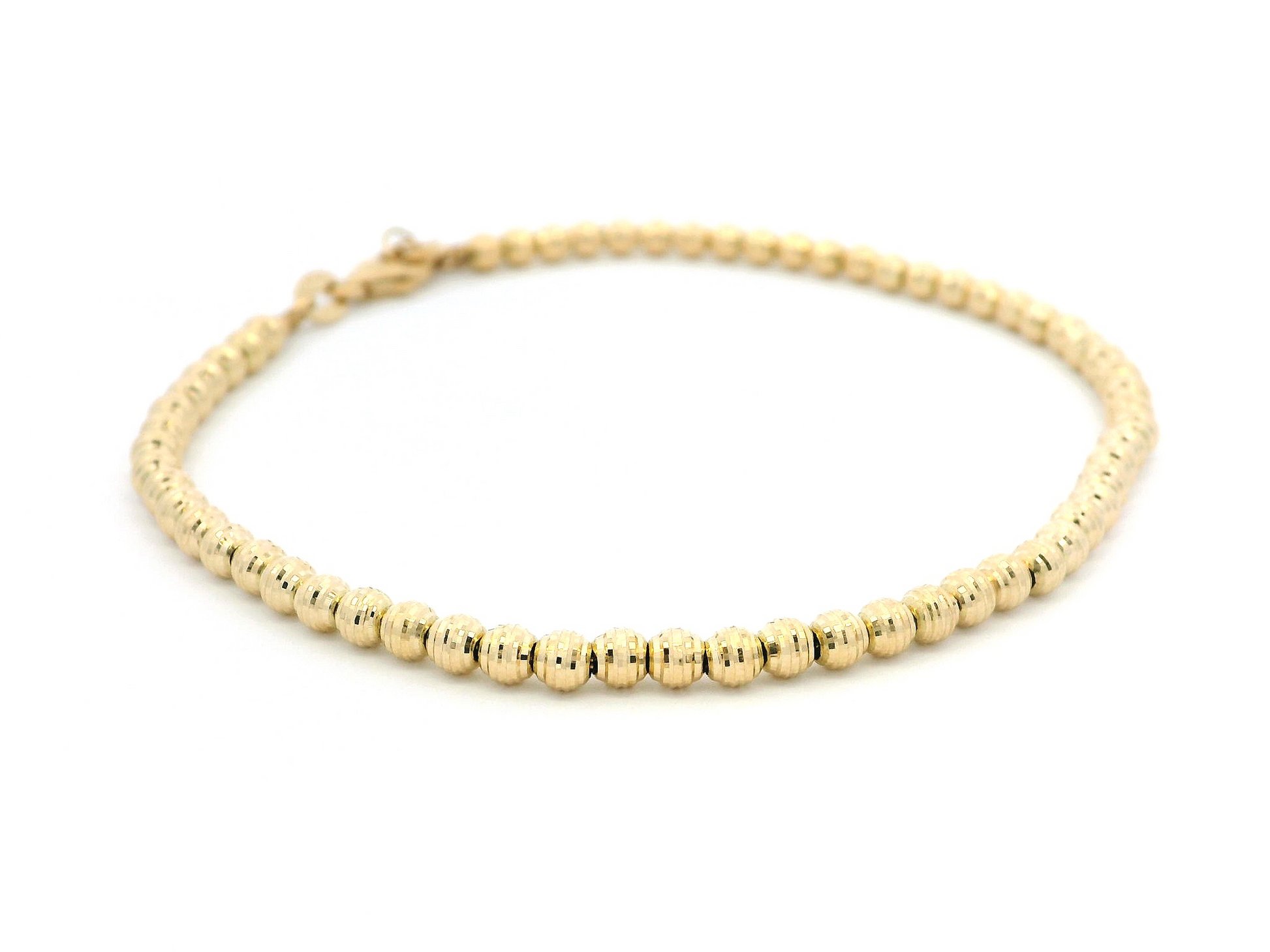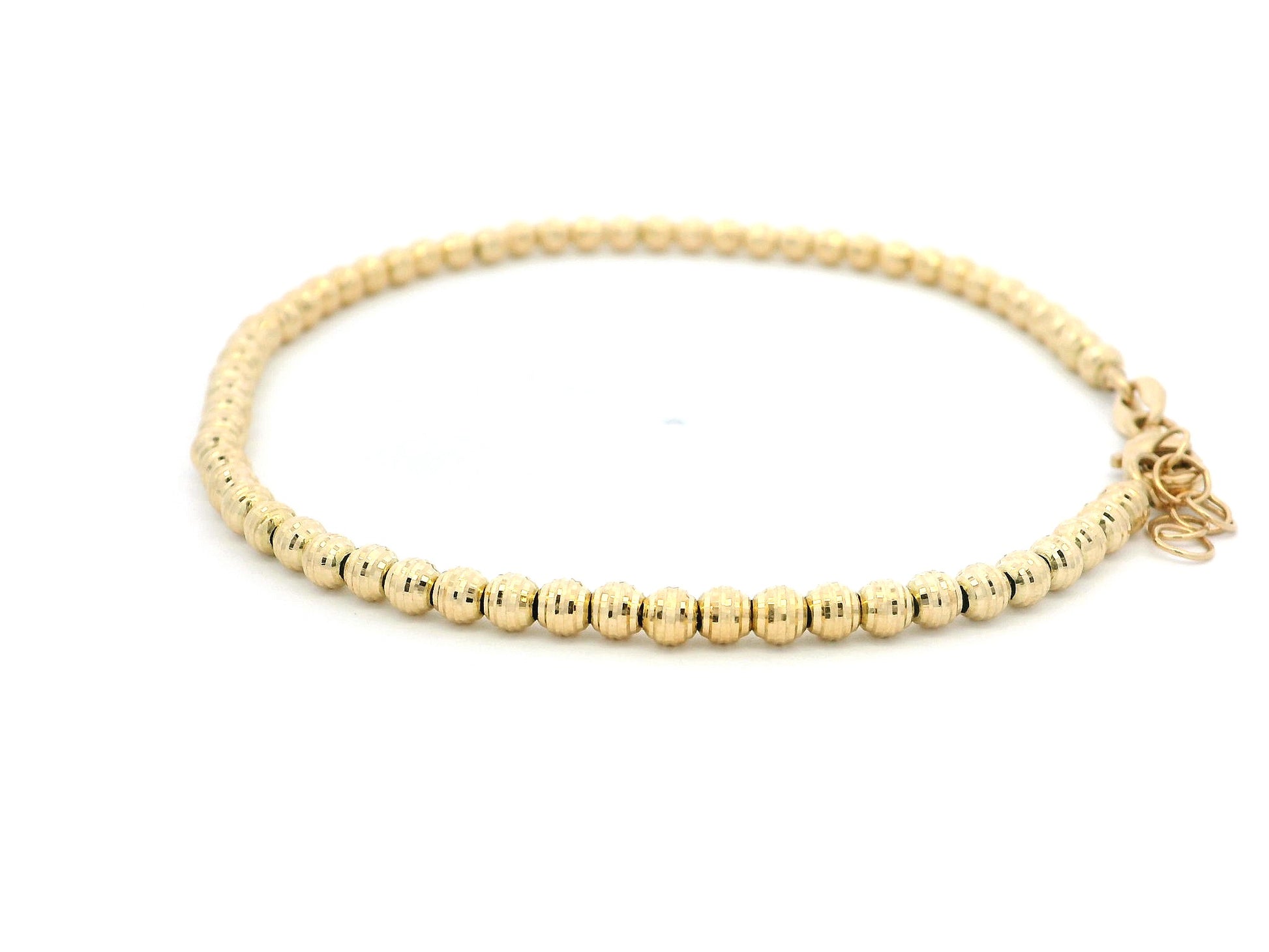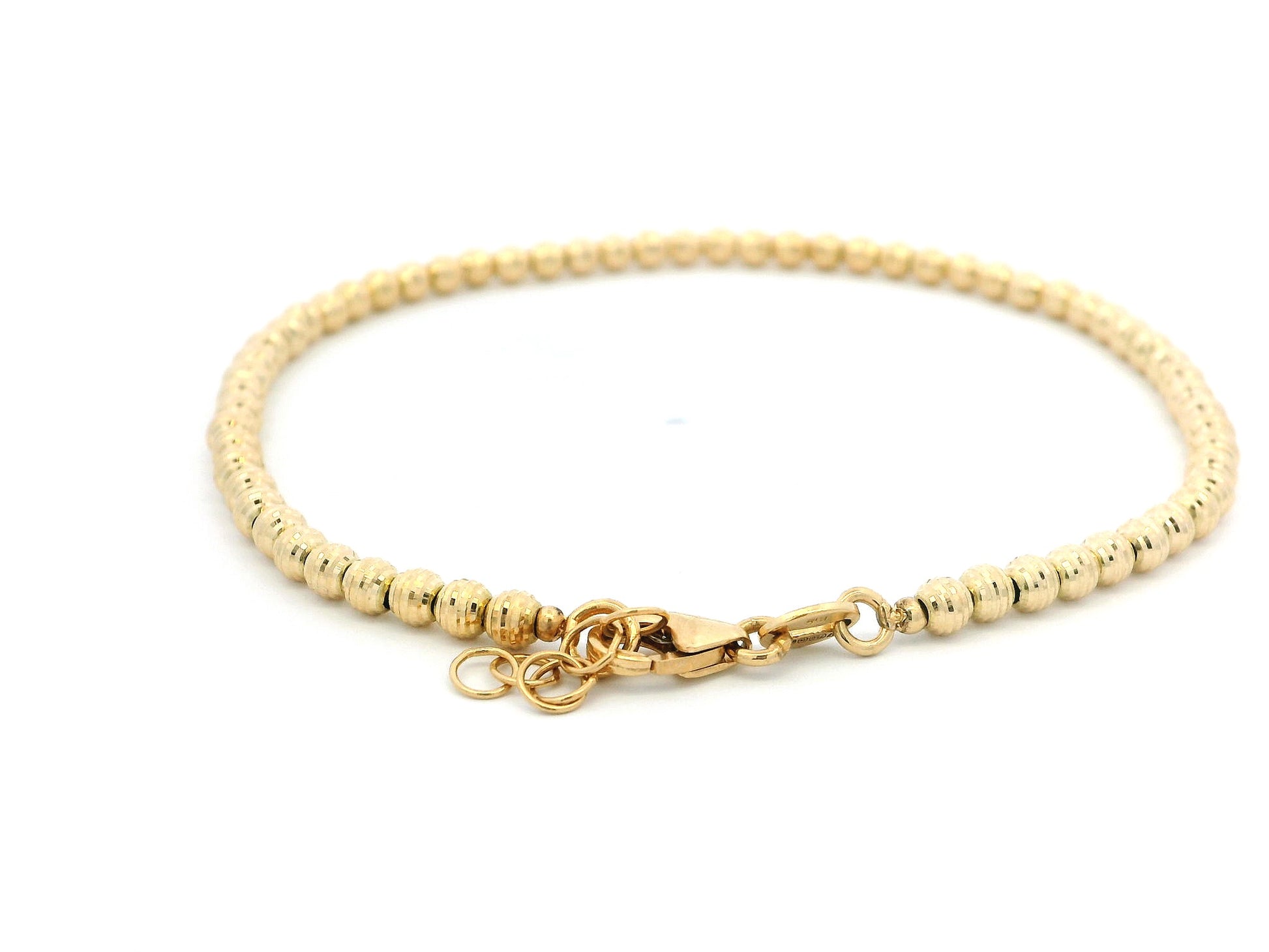 Verstelbare armband van 18 karaat geelgoud met kralen en karabijnsluiting – elegant en veelzijdig ontwerp