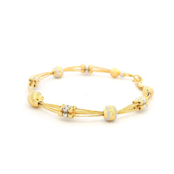 This stunning bangle bracelet showcases the finest 22ct yellow gold, offering exceptional purity and brilliance that only genuine gold can provide. The rich, warm colour creates an elegant appearance that catches the light beautifully, making it perfect for both everyday wear and special occasions.