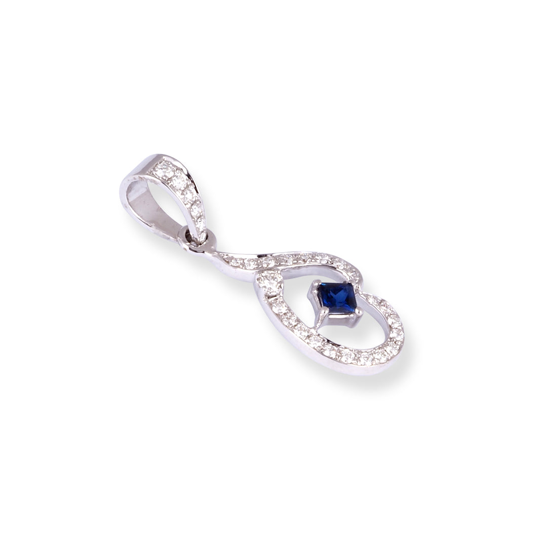 18kt witgouden driehoekige hanger en oorbellen met diamant en blauwe saffier P-7968/E-P7968