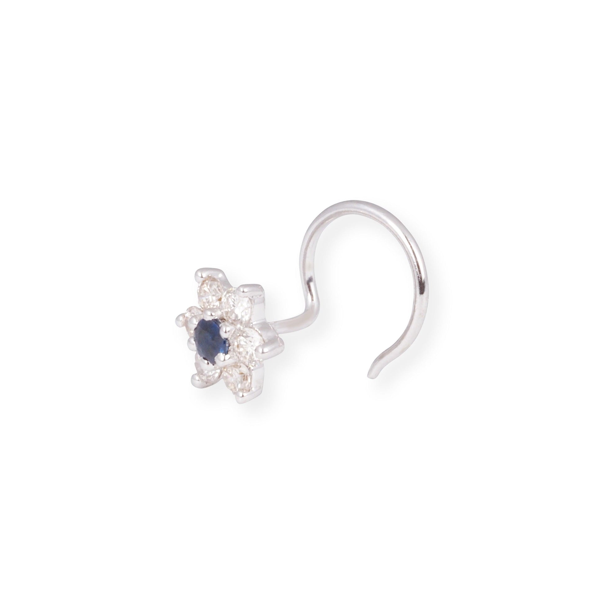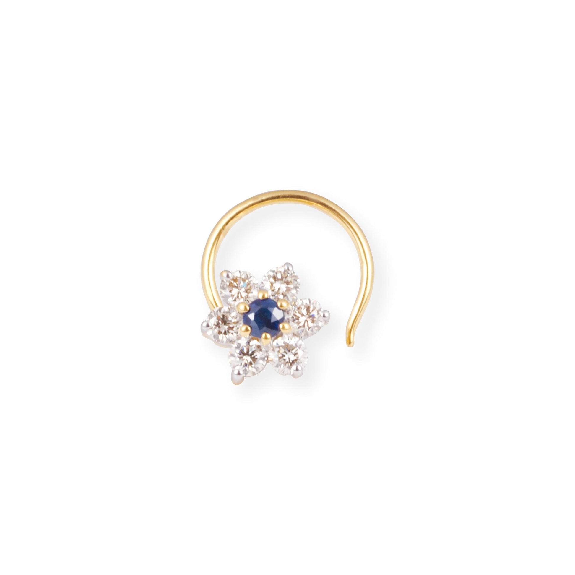 18ct Gold Diamond and Blue Sapphire Cluster Wire Coil Back Nose Stud MCS2657 MCS2794 - Minar Jewellers