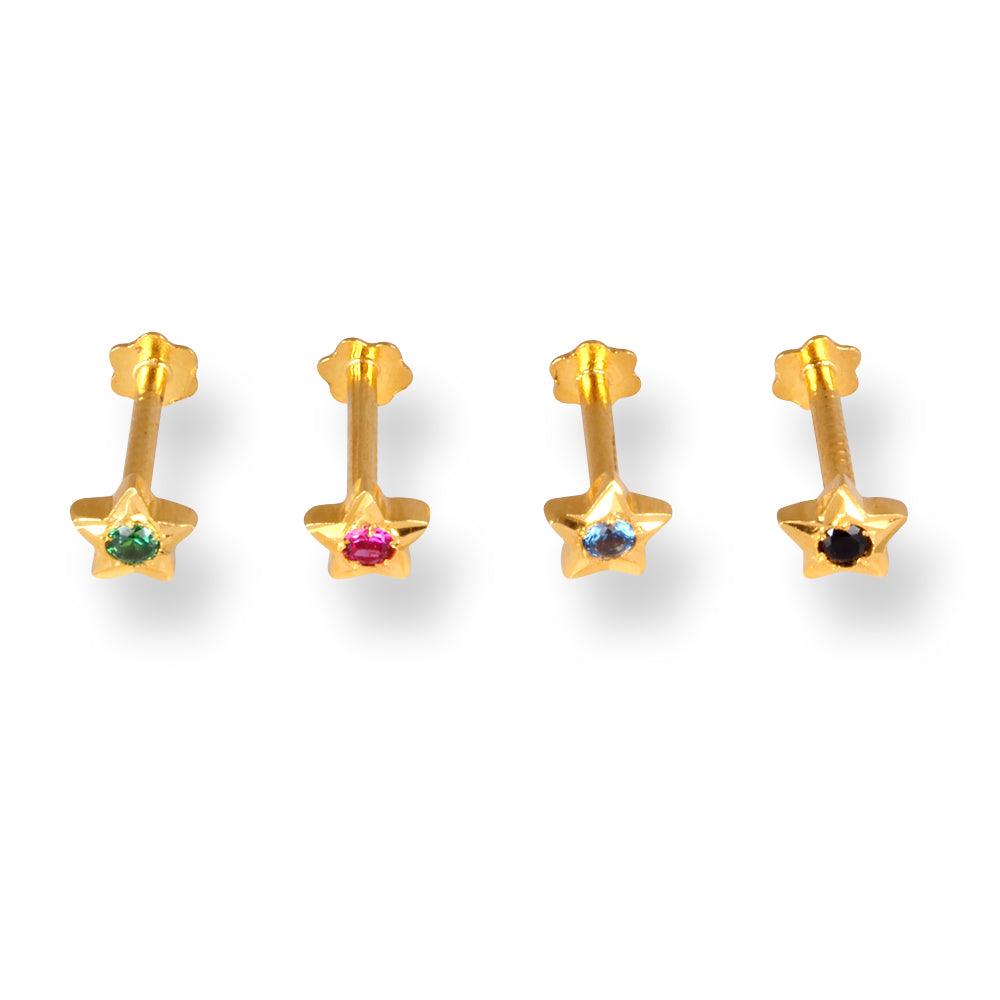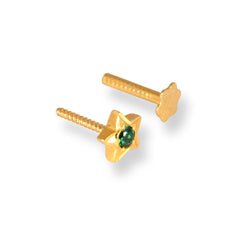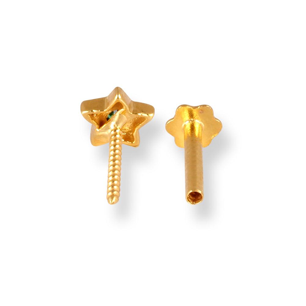 18ct Yellow Gold Star Shaped Screw Back Nose Stud with Cubic Zirconia Stone NS-4360SB - Minar Jewellers