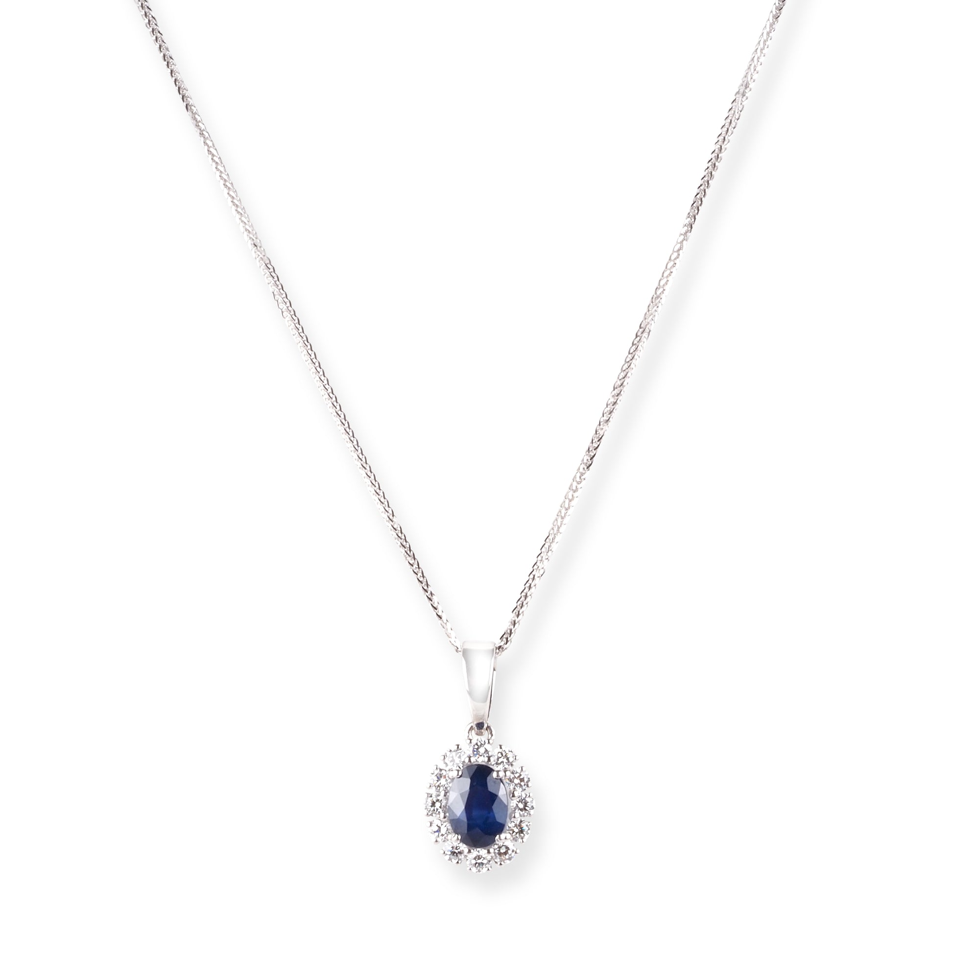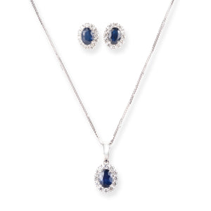18ct White Gold With Diamond and Blue Sapphire Pendant Suite