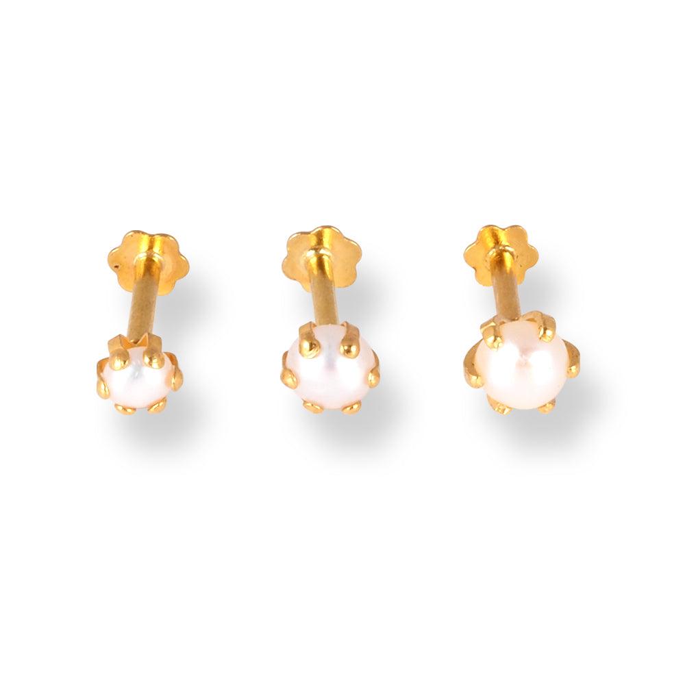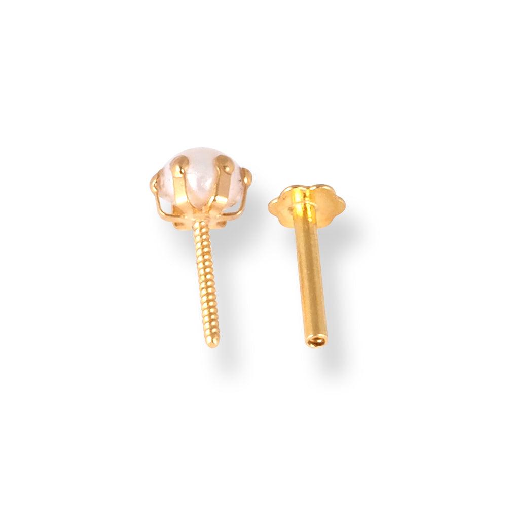 18ct Yellow Gold Screw Back Nose Stud with Cultured Pearl (3mm - 4mm) NS-2530 - Minar Jewellers