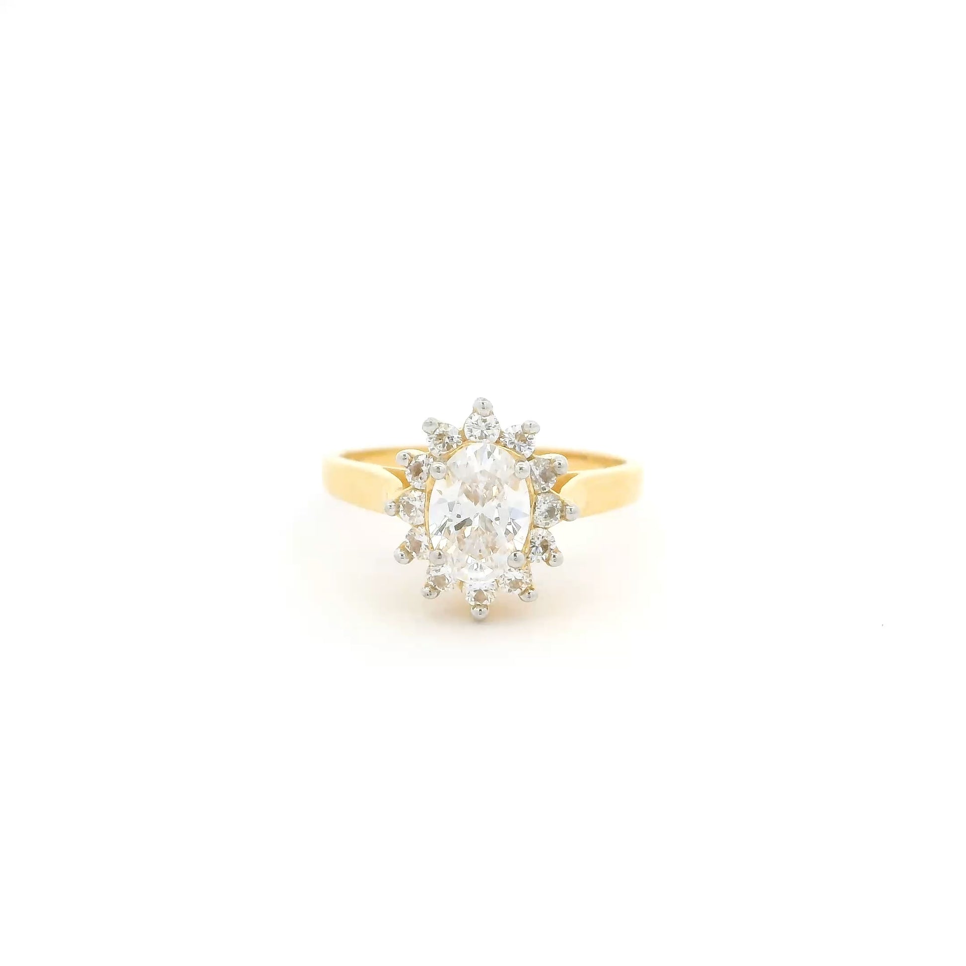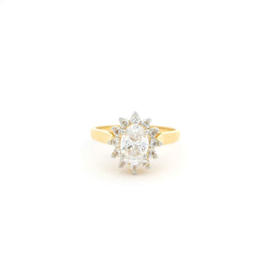 22ct Gold Cubic Zirconia Ring – Oval Centre Stone Cluster Style | Size K½