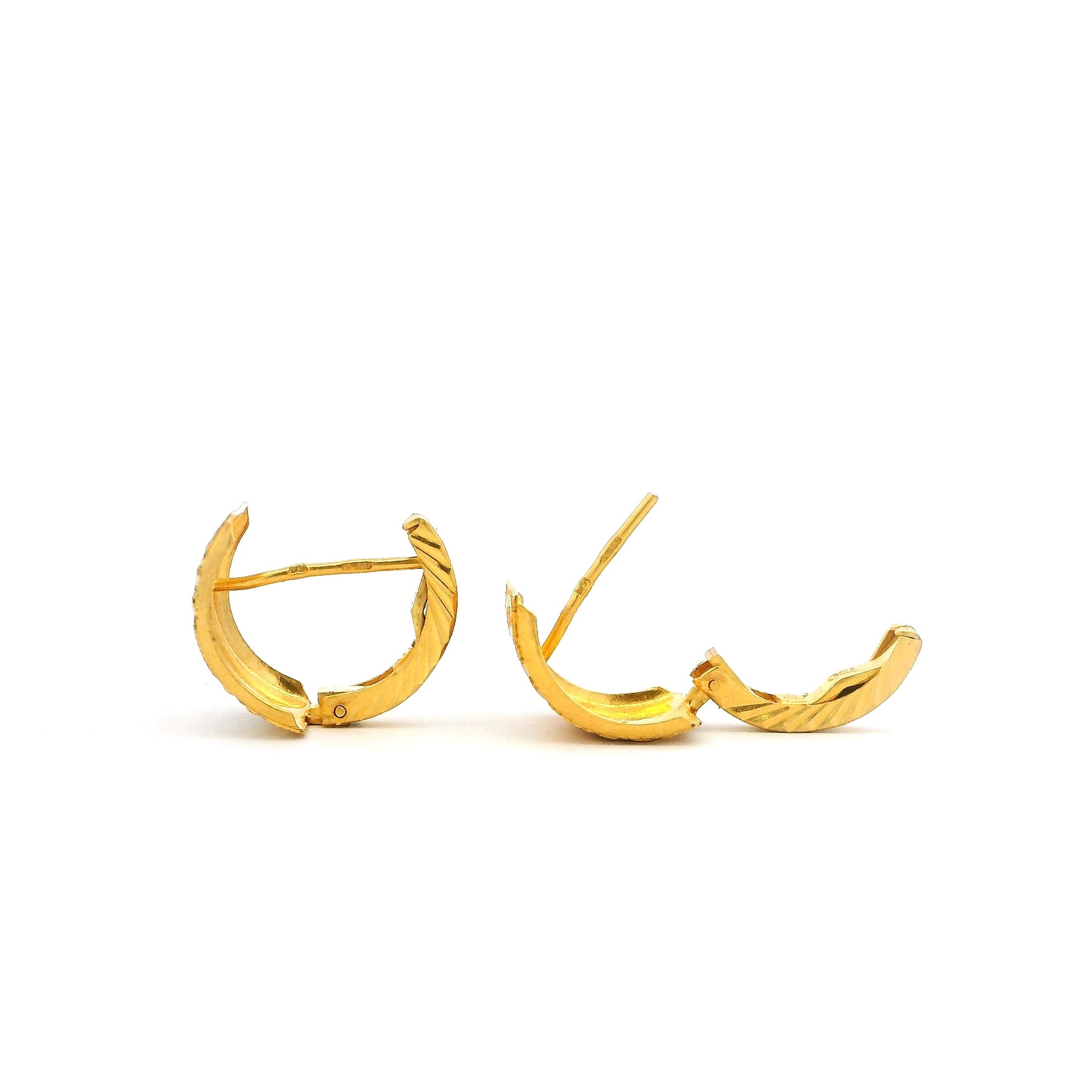 22ct Gold Hoop Earrings with Rhodium Plating – Modern Pattern Finish