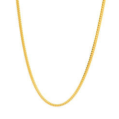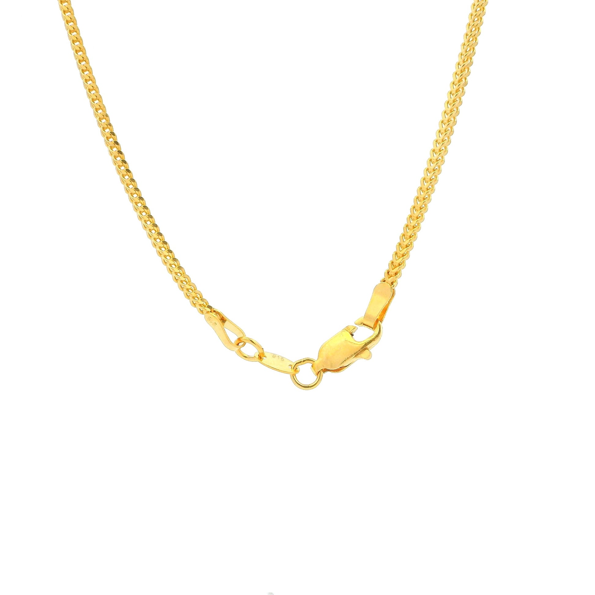This beautiful square foxtail chain showcases the rich, warm glow that only genuine 22ct solid gold can provide. The high gold content ensures exceptional durability whilst maintaining the soft, luxurious appearance that makes gold jewellery so desirable. Each link is carefully crafted to create a smooth, flexible chain that drapes naturally around the neck.