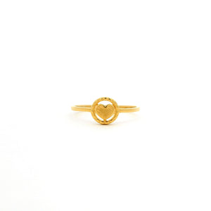 Crafted in 22ct yellow gold, this elegant ring features a central heart motif surrounded by an engraved circle design. Its polished finish and meaningful style make it a versatile piece of jewellery, perfect for everyday wear or as a symbol of love and affection.