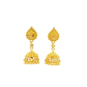 Crafted from high-quality 22k gold, these jhumka earrings offer exceptional purity and lasting value. The superior go...
