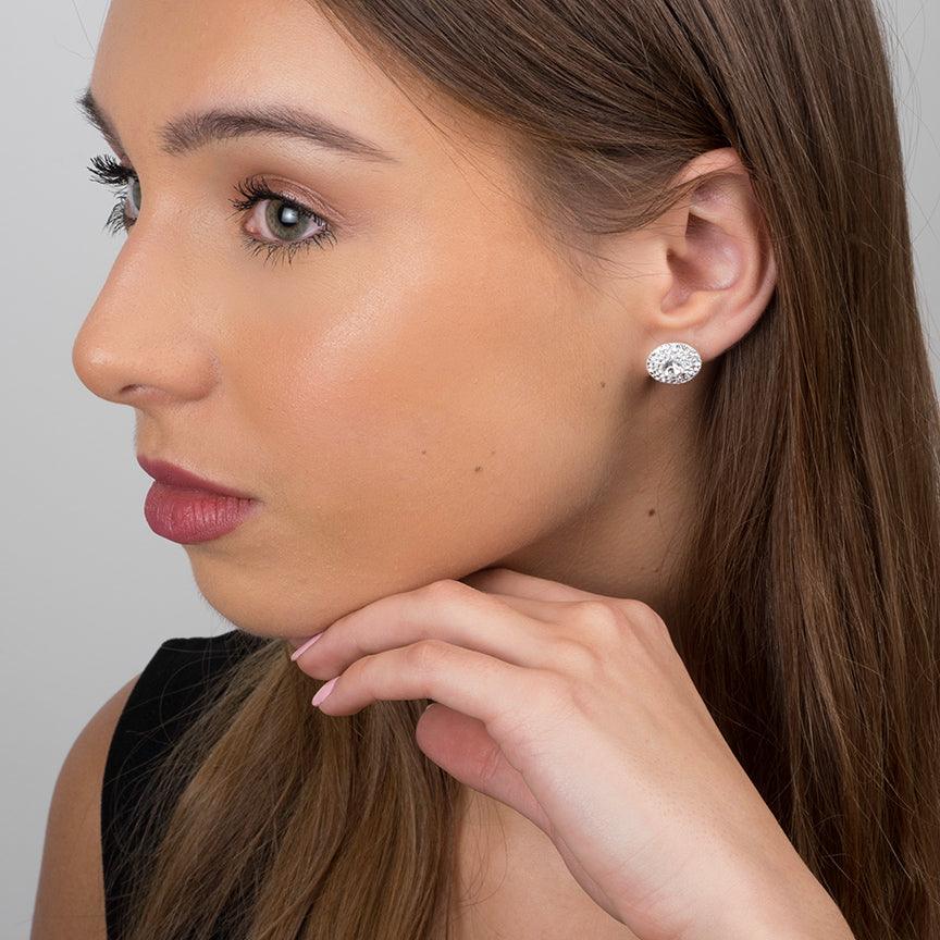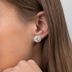 These sterling silver earrings feature a refined and ornate design, highlighted by clear crystals that catch the ligh...